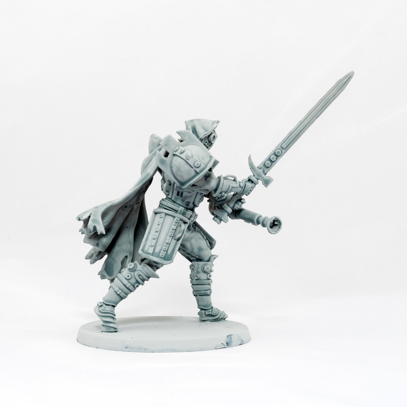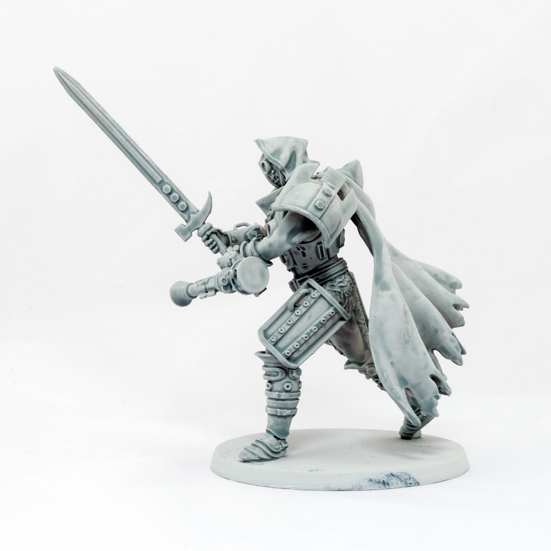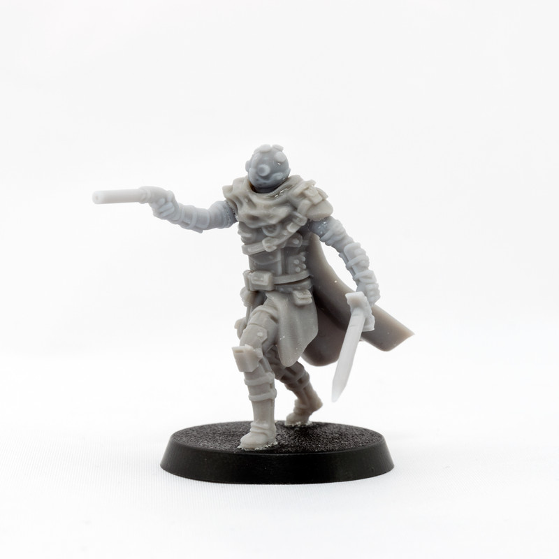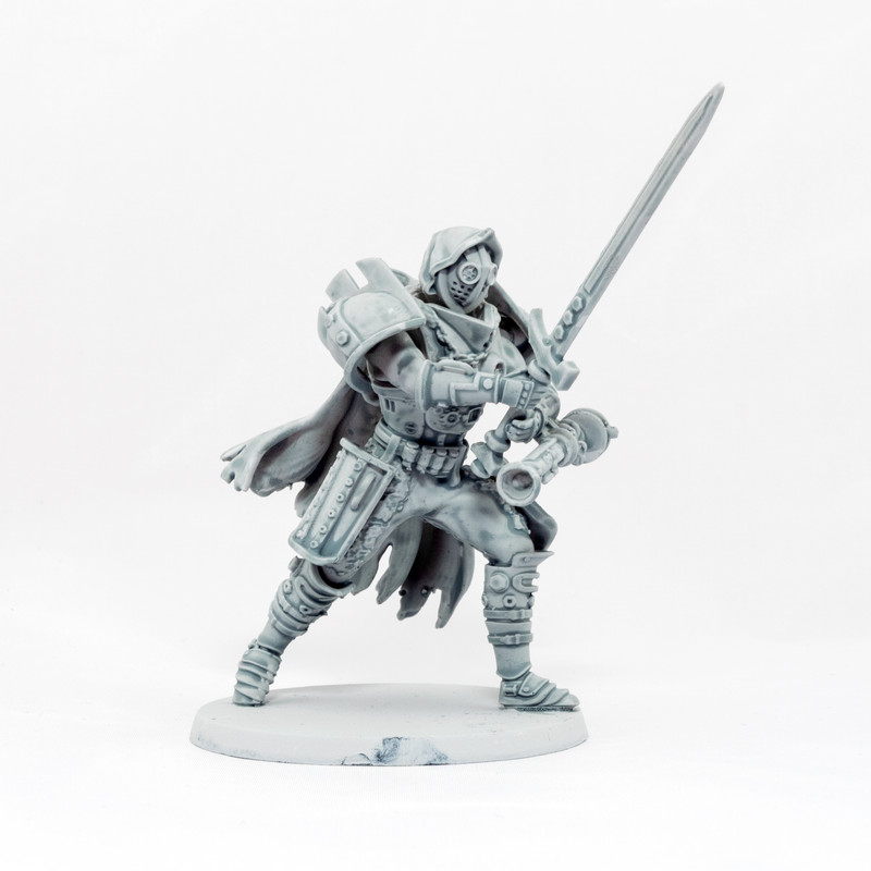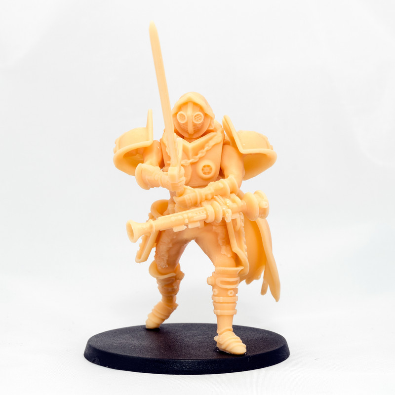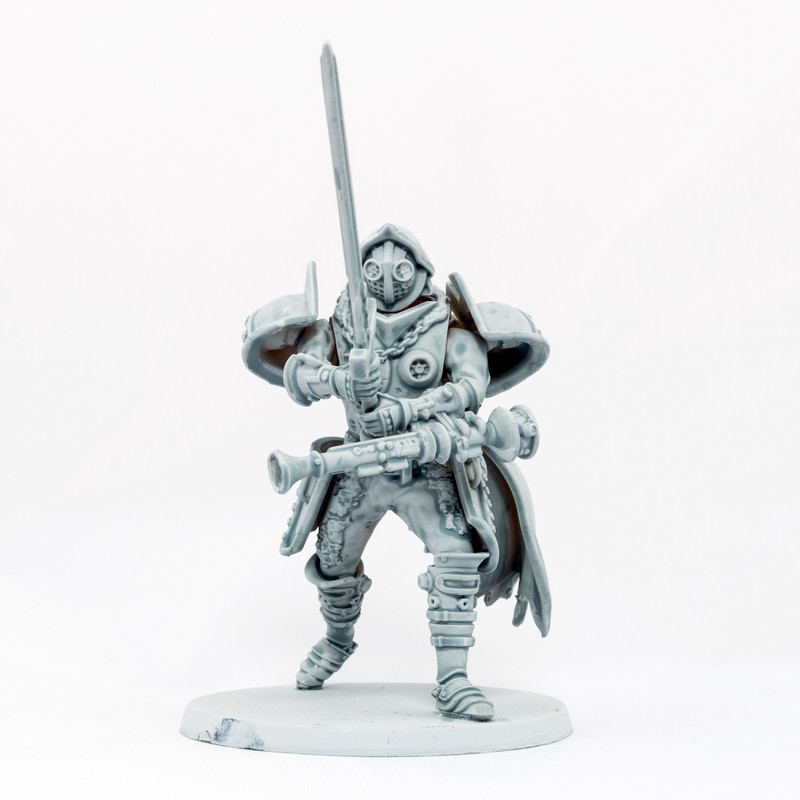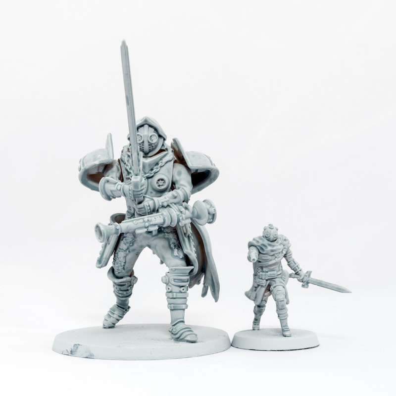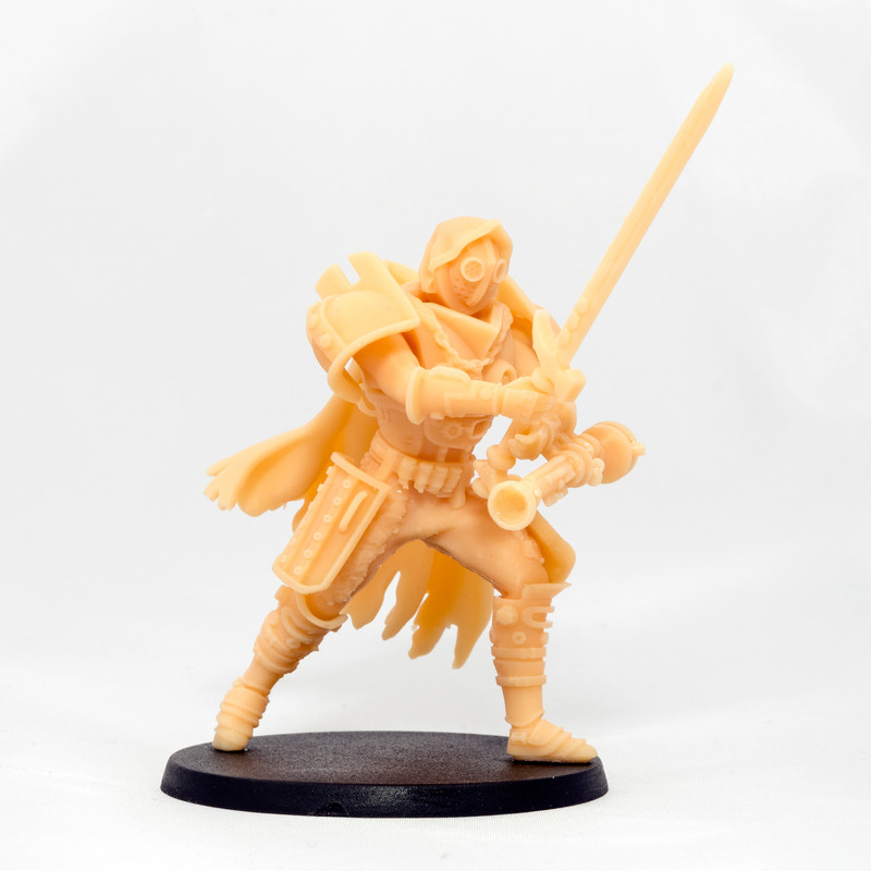 We're a small miniature wargame company in Canada that have been working on developing a 36mm truescale skirmish wargame called Kingdom & Empire for the last three years. Our game predominantly features humanoid miniatures that are ~40mm tall, along with a number of large piloted magically powered mechanical suits of armour called Praetorians, which are typically around 80mm tall. A few months ago we announced the release of our first resin miniature, the Missionary MK II Praetorian.
