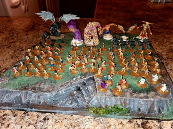 This is the undead army I was able to finish last month. All of the 15mm stuff is from Splinter Light Miniatures. The big beasties are mostly from Reaper Bones .