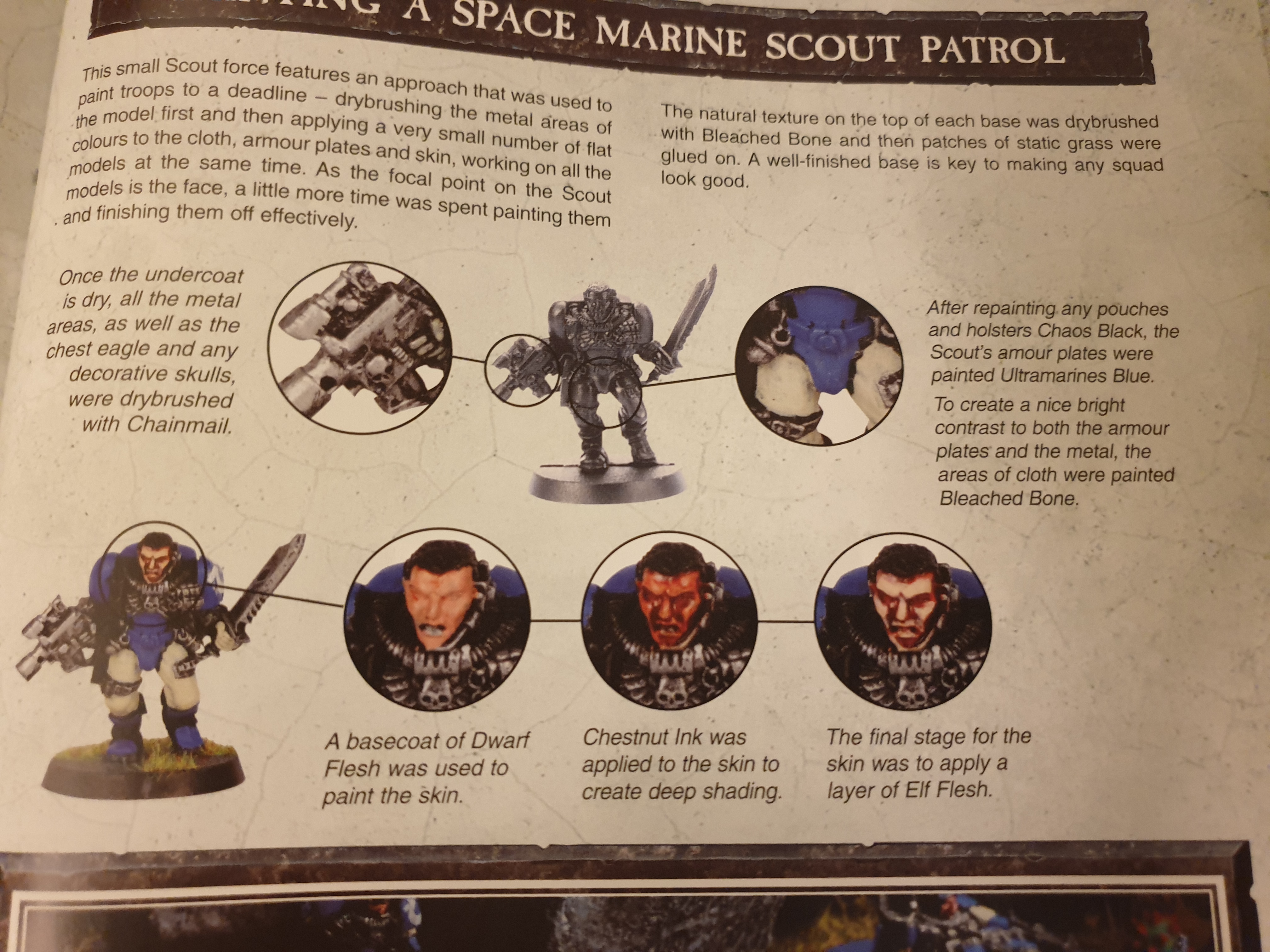 In the 4th ed rule book, there was a guide to painting some SM Scouts, was a quick tabletop finish where the faces were flesh coloured with a chestnut ink applied, so I suppose you could use a shade and highlight the faces to give them depth