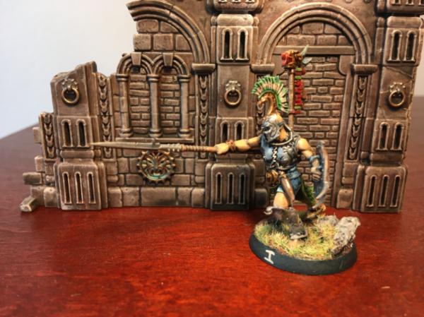 I also need to craft a second Venomblood with spear and shield. I didn't really have anything in my bits box that matched, so I did break my resolution just this once to pick up a discounted Harbinger of Osiris from the Wargods of Aegyptus line. I love the lore and the game but it's pretty much moribund at this point, unfortunately. But if you're nostalgic for Tomb Kings I'd really encourage you to check out the Crocodile Games webstore - the models are a bit pricey, I was lucky to pick this up for half-off from my local shop. I liked that it matched the gladiatorial-theme (mail, headdress, sandals) and was on the same-scale as the other Venomblood.