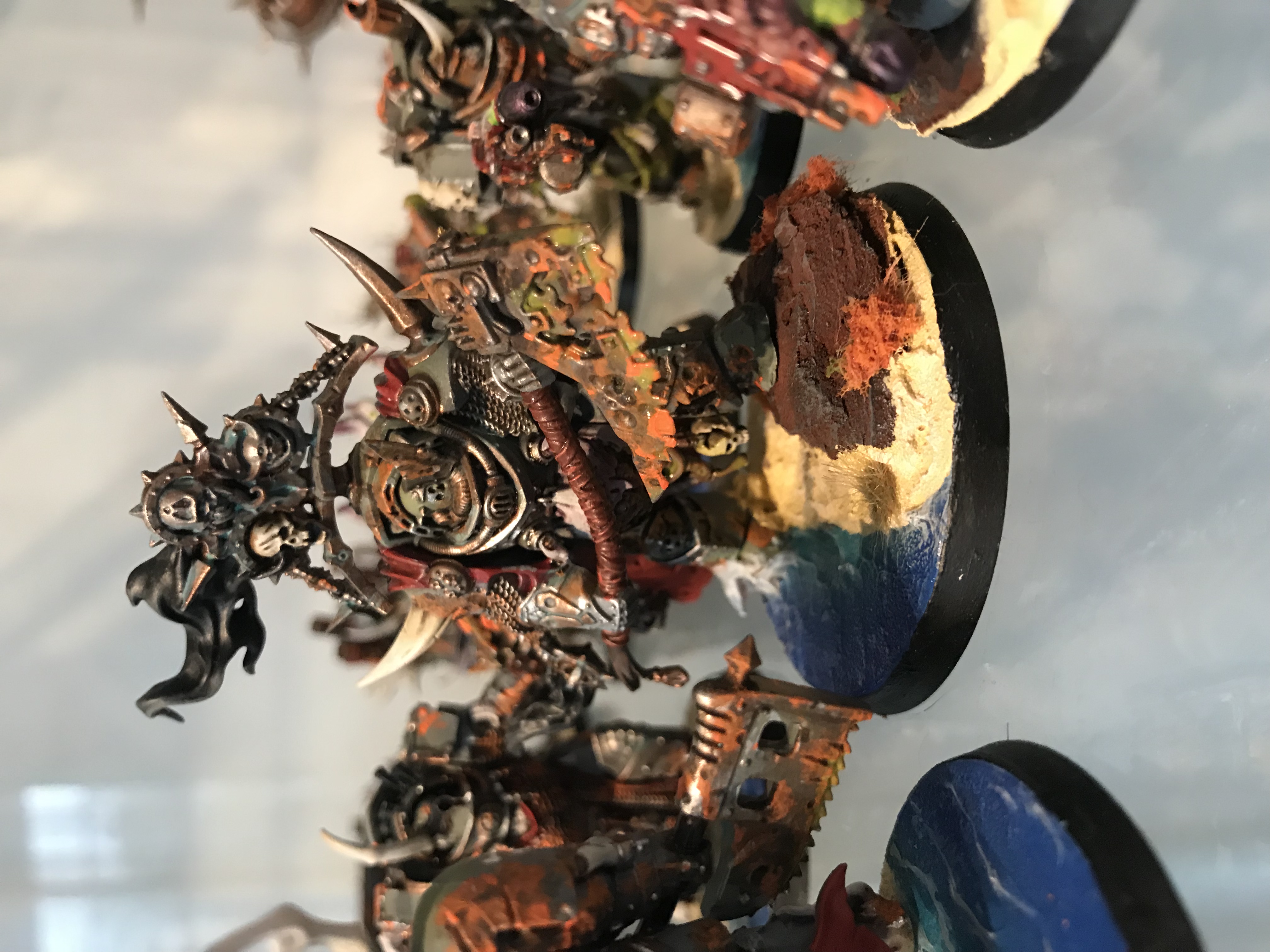 I've been working on a complete DG army. Here's what's on my table right now. I'm a few weeks off from being finished. Some of my Chaos Knights are in there, their bases are themed too.