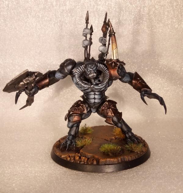 He looks great! Nice use of the dreadnought base. I think the burnished armor plates came out especially well, and the transitions on the shoulder horn look very realistic.