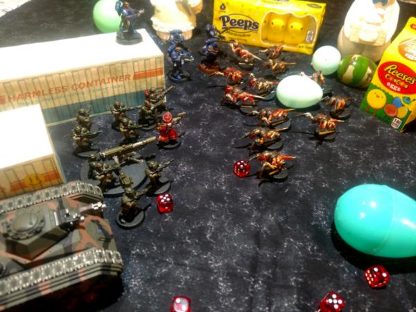 Triple bonus here: Nicely painted minis, getting a game in with the family, and riches to the winner! Hope you got at least one Peep!