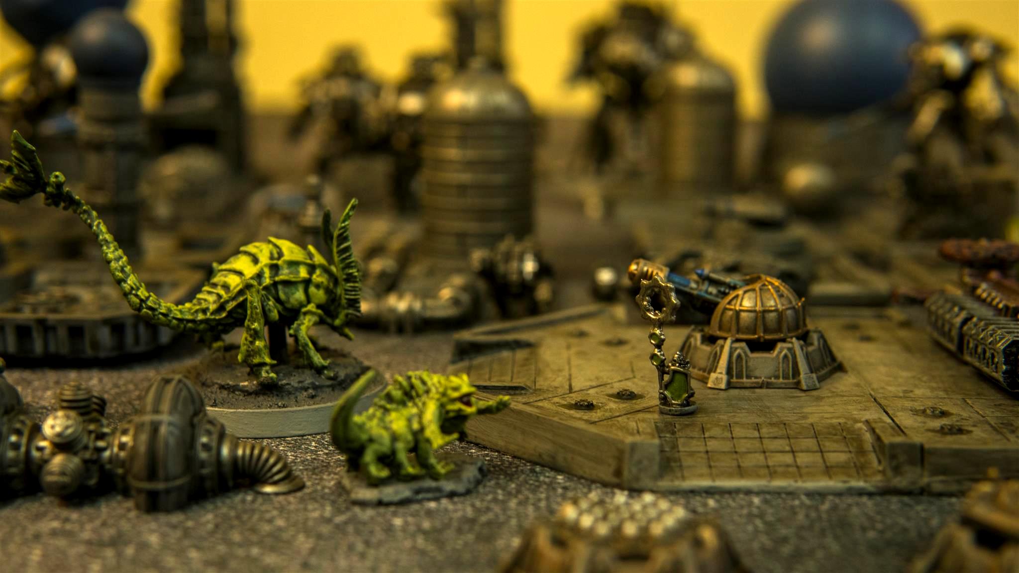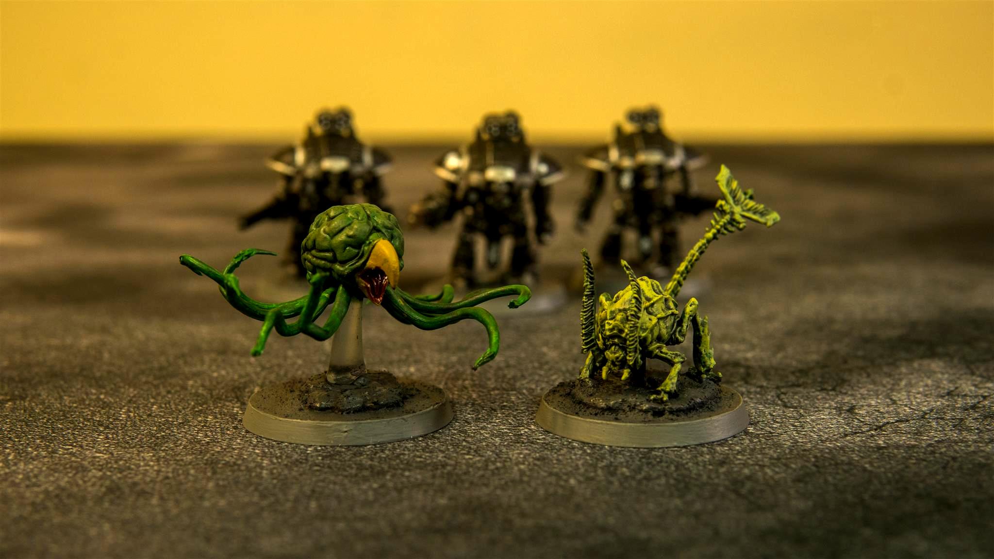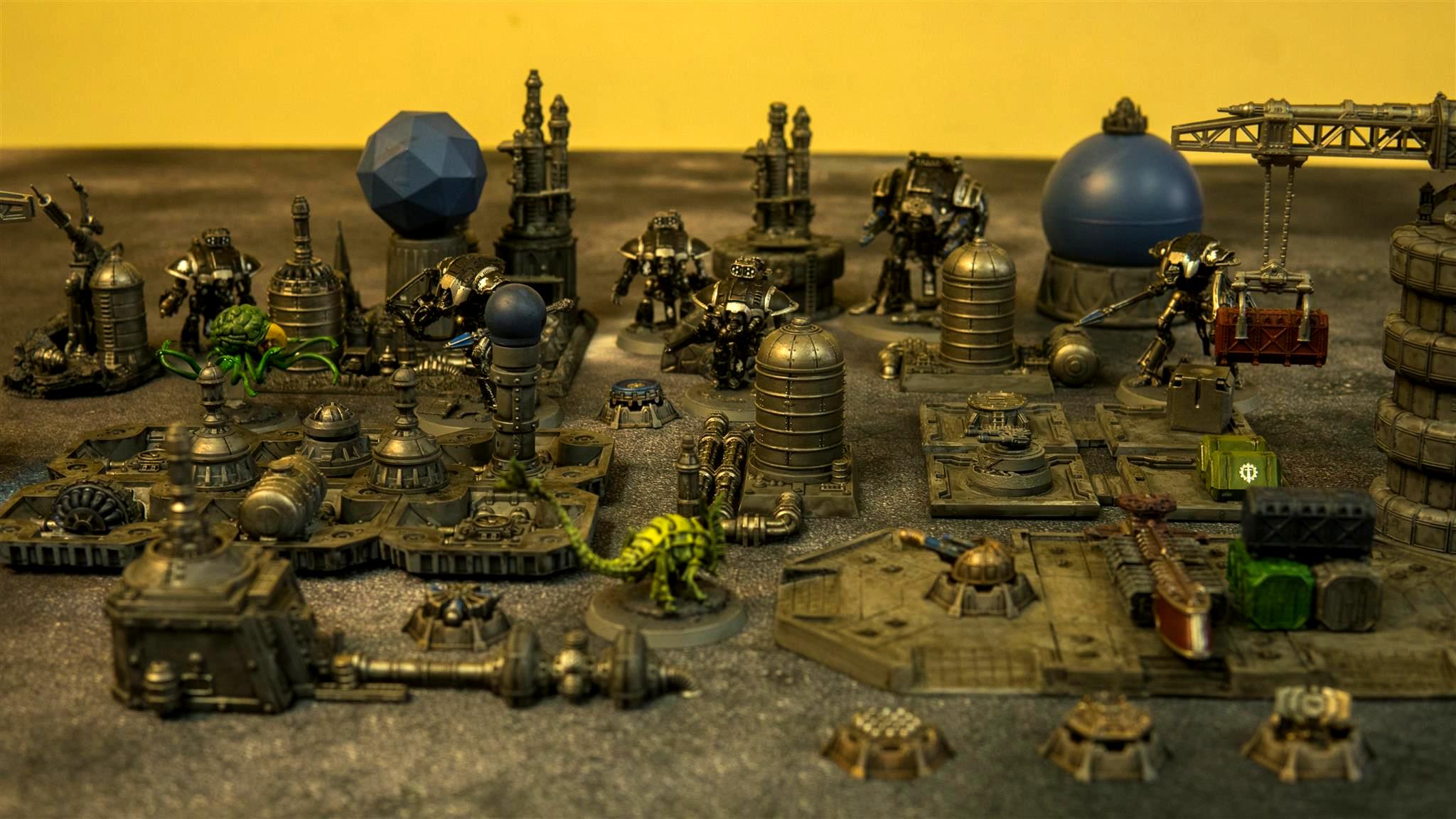 So in the molech book there's a cool little scenario where knights hunt beasts. Gives rules for 3 different species of beasties and describes them as about the size of a knight and says to model them on 40mm bases like knights. So I went with some D&D primed models cuz they're about the right size, unfortunately one neded up being way too small so I'm trying to find an ur-guhl from the blackstone box. So far I;ve done the "azhdarchid" and the "xenosmilus". One has razor sharp beak, the other spits poison and moves double speed when wounded. They basically pop out of terran and attack knights. Stoked to try an incorporate that into a wider scenario. Also got some more shots of the battle group duking it out over the industrial terrain with the beasts. Hoping to get the first game in soon.