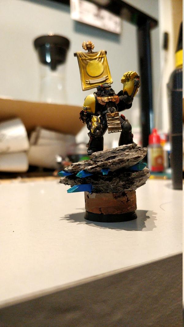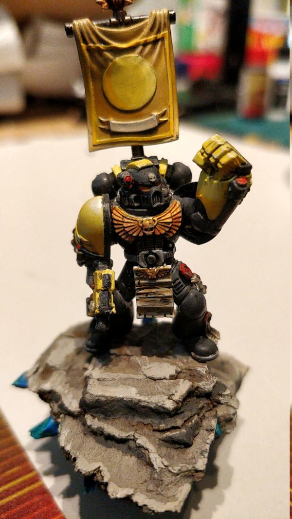 So here is my best figure until now, the leader of a tactical troop of space marines, murum lux, underchapter of the Imperial Fists: