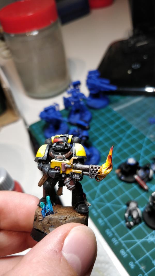 Nice work and interesting paint scheme. Yellow is a tricky colour to get right. Black and yellow are a really nice and striking mix of colours (I've always liked the Scythes of The Emperor scheme).