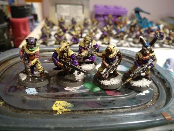 So yeah I'm a furry and I've been dying to make an army that is wholly unique to me. Which to be honest had me messing around with the bitz box, originally thinking of just mixing Skaven and CSM and calling it a day, BUT I stumbled across a game called Albedo and used some of it's bitz, Circle bitz from Hordes, and some D&D pieces, a few 3rd party places, as well as much GW stuff I could find to keep the 75% GW quota so I can actually use this army some day in a store. That said I also got to experiment and learn how to best use green stuff, which is a material I really haven't used much at all outside of this project.