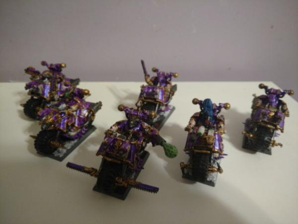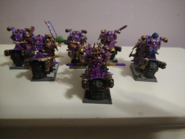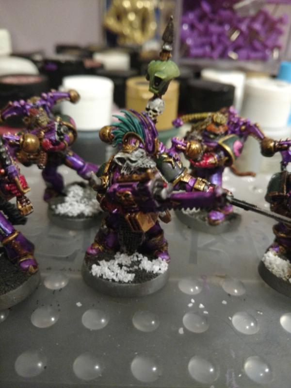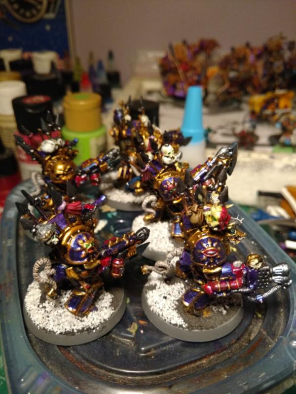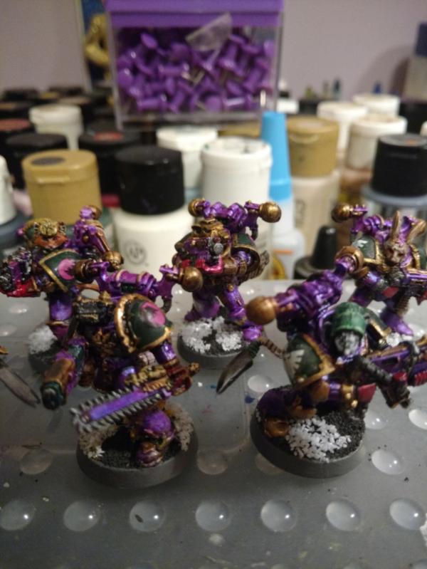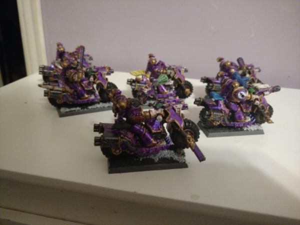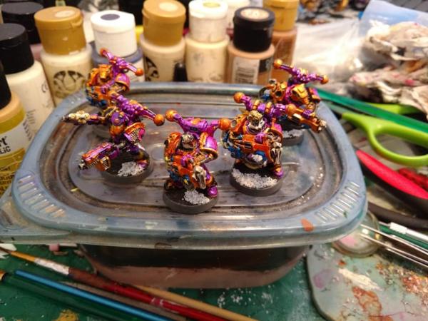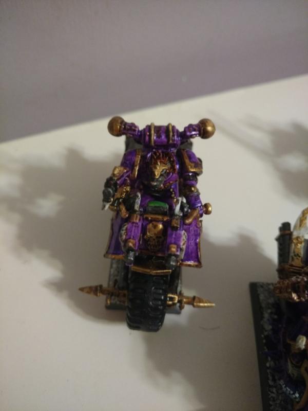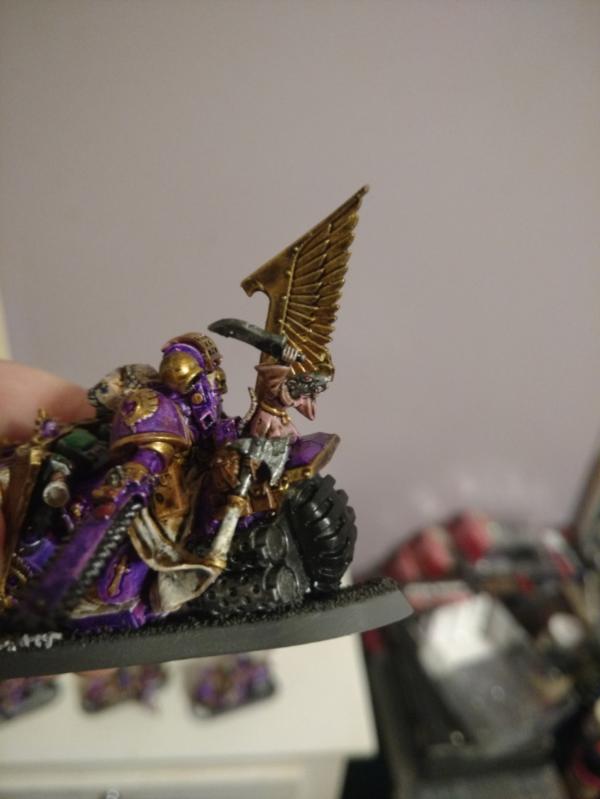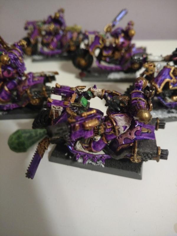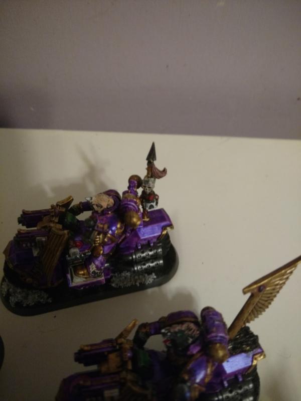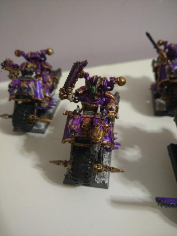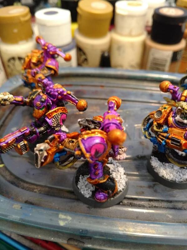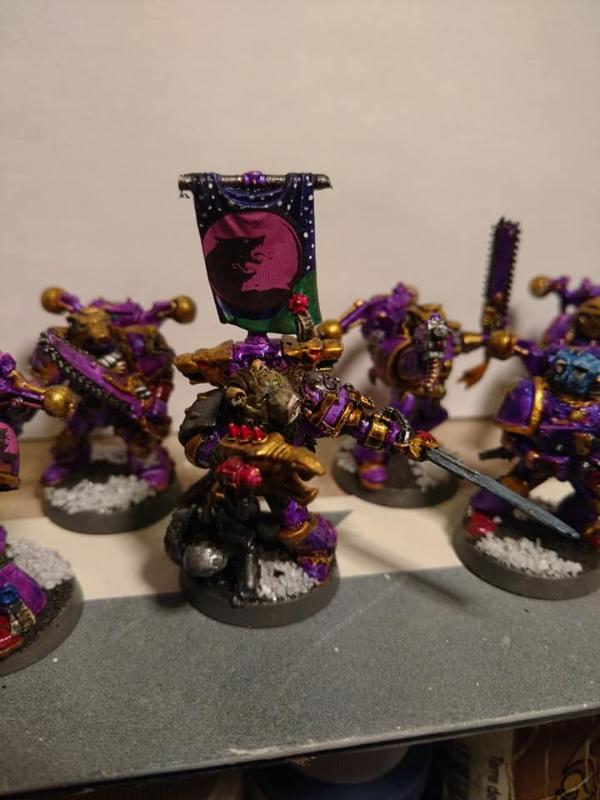 Fluff wise they are a fallen White Scars successor chapter, so they favor bikes and rhinos, hunting down their 'prey' and worship Slannesh (as an army with STRONG Furry and Werewolf/werecreature motifs it was a hard battle wheter to go Slannesh or Tzeentch. but the main influence of the name of the army AND a certain scene from that movie (Howling II) pushed me to the dark prince's embraces)