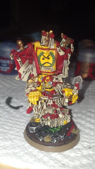 This weekend I got a handful of purity seals for a local gamer. Not enough though lol. If anyone wants to donate purity seals PM me. I clipped up a CSM terminator lord cape and glued it to the book on the chaplain hip. When covered it will give it more of the "ghili suit look". What do you guys think so far?