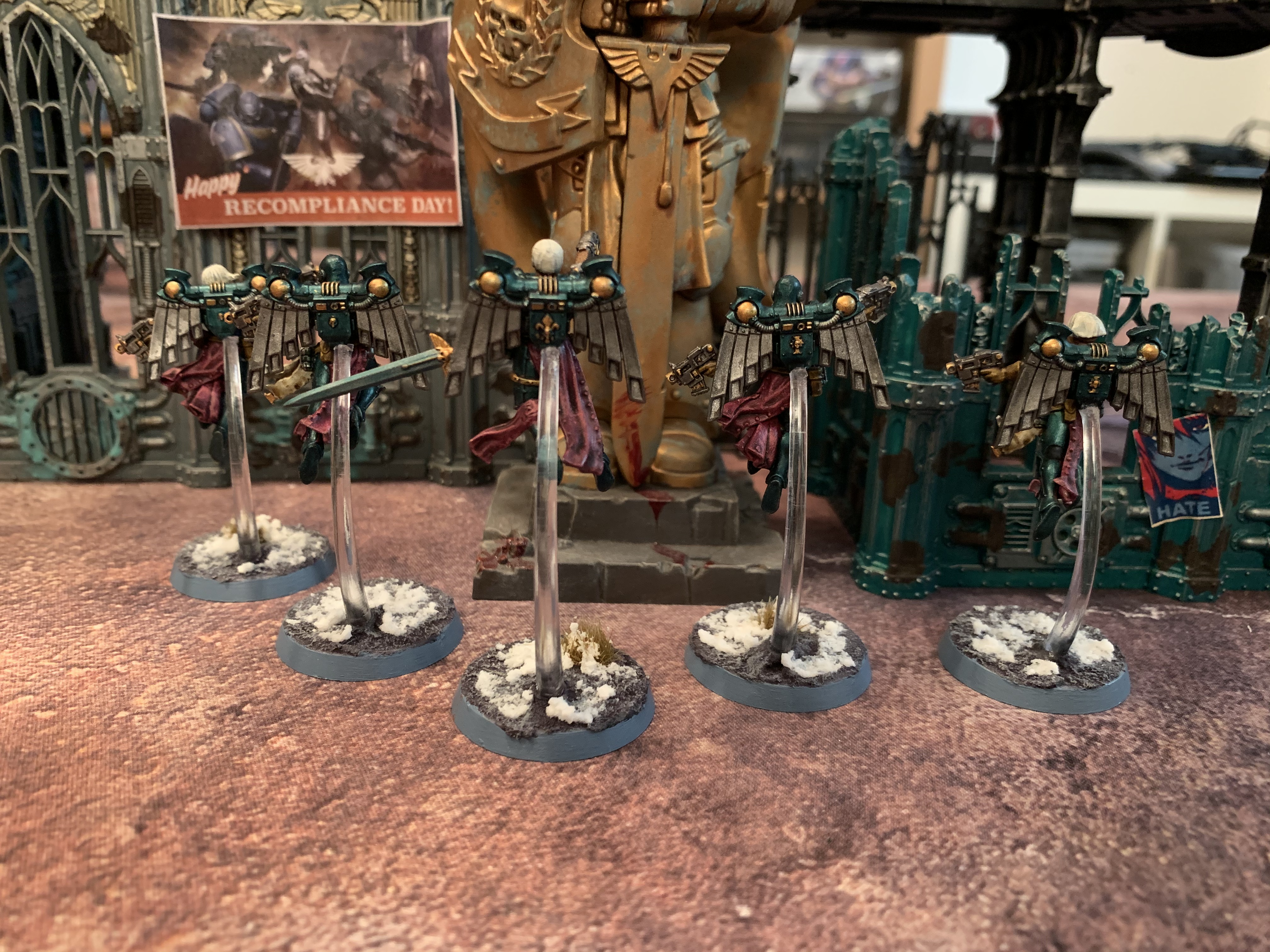 Viterbi - Great choice of colours, almost like the brides of the Sons of Horus. Not sure how well that would go down with the ecclesiarchy though. The scenery in the background looks really good also.