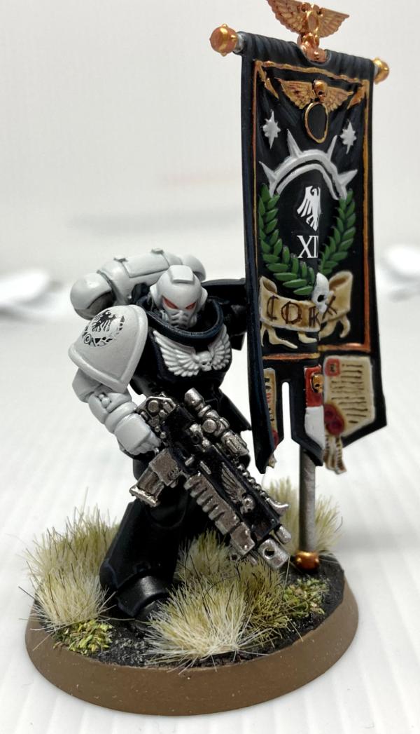 Been a while since I’ve posed on Dakkadakka, good to be back. Anyways here’s a Raven Guard Primaris Ancient I recently finished up, looking for critique to improve my painting. Thanks in advance!