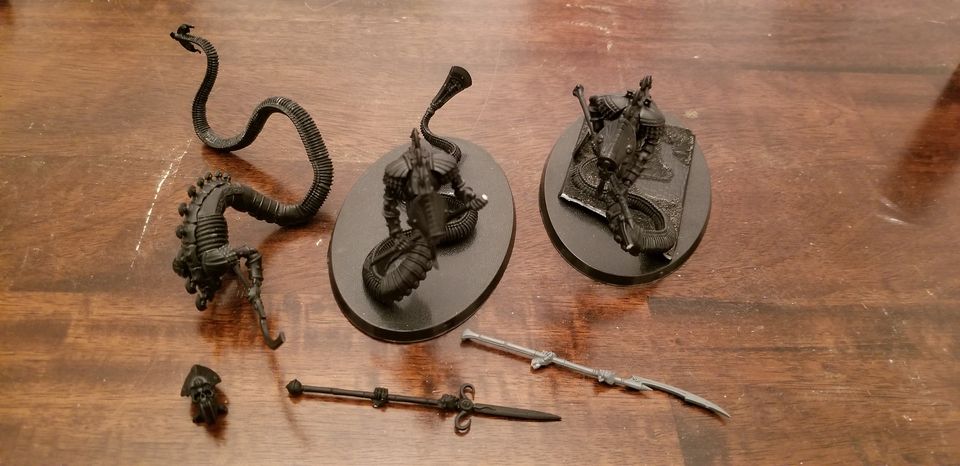 3 x Sepulchral Stalkers primed black. Some weapons are broken so I am including replacement bits so they can be repaired.