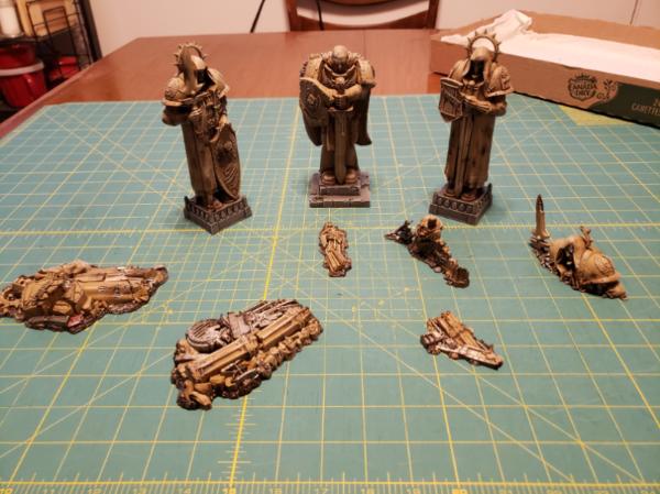 Got the last batch of terrain done for the summer, a bunch of sandstone statue terrain from killteam/40K.