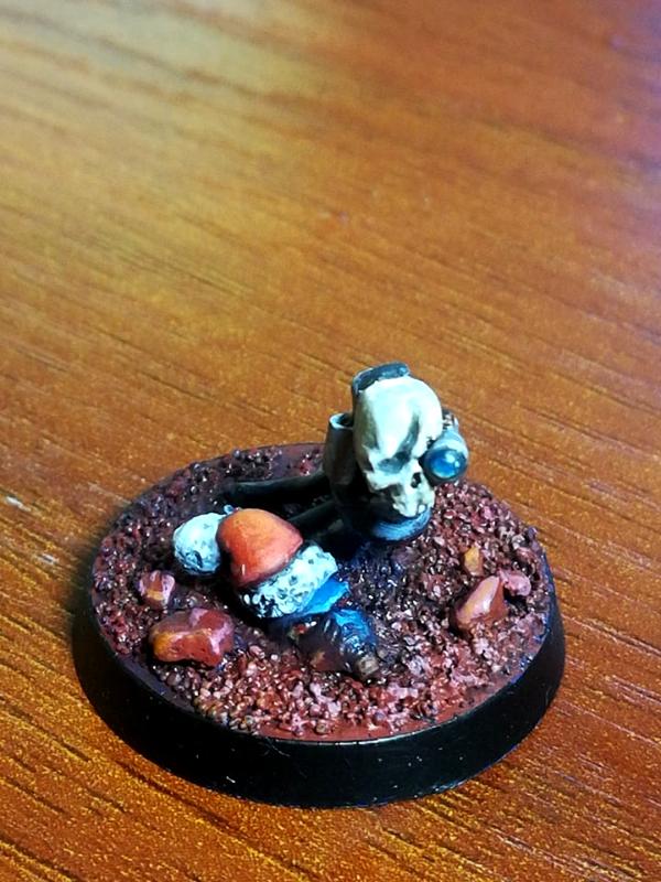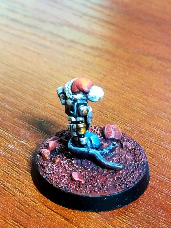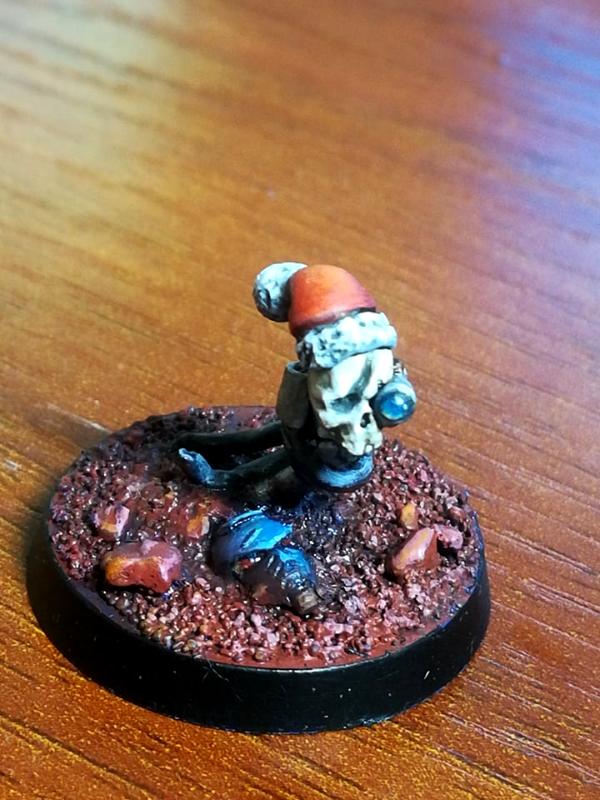Had a lot of fun with this little mini, and played with the painting a bit after months without touching a brush. Basically, a custom made servo skull with a magnetized Santa hat, as well as an ultramarines helmet on the base (my main army). I think I could keep making hats for it as a recurrent joke, and switch them for the holiday or occasion.