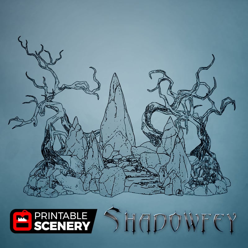 Printable Scenery's Shadowfey kickstarter is a dark fantasy set that is perfect terrain for Mordheim, Frostgrave or your Dungeon & Dragons games set in the Shadowfell.