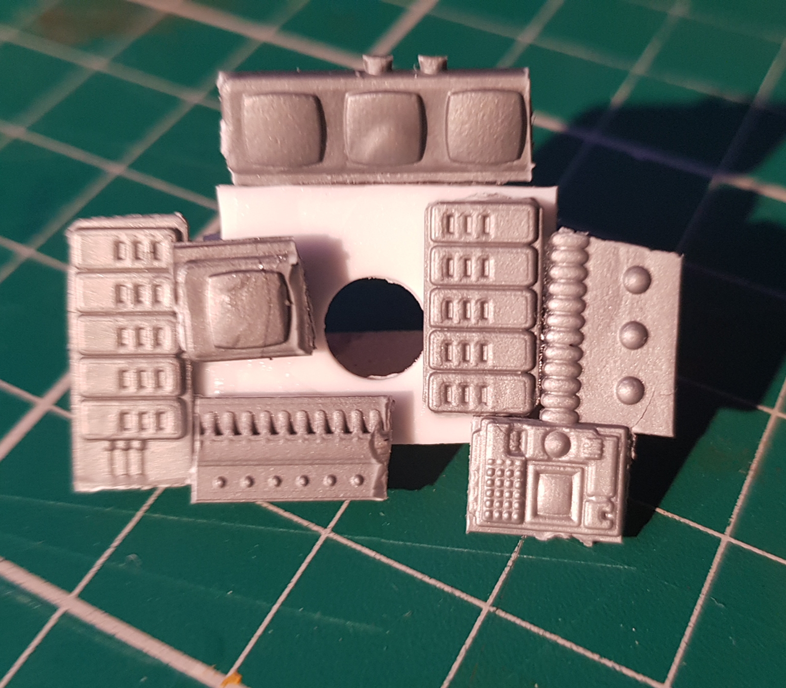 Had fun putting together this asymetric computer console. Light will come from the central round screen/radar thing.