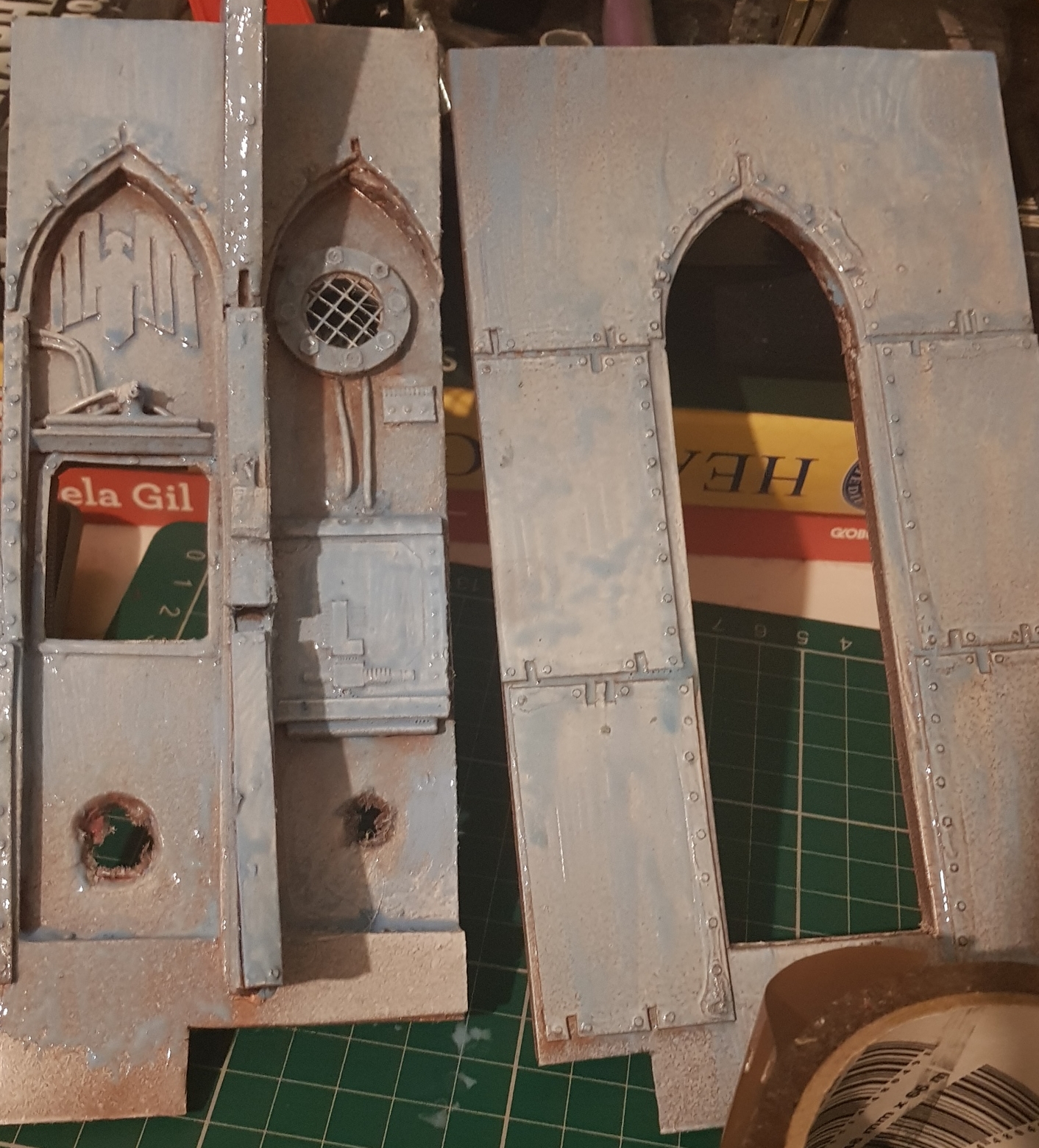 Happy with how it is going so far. I'm open to colour scheme suggestions. My current gut is to go with a light blue, blue stained white, like this Necromunda image on the walls.