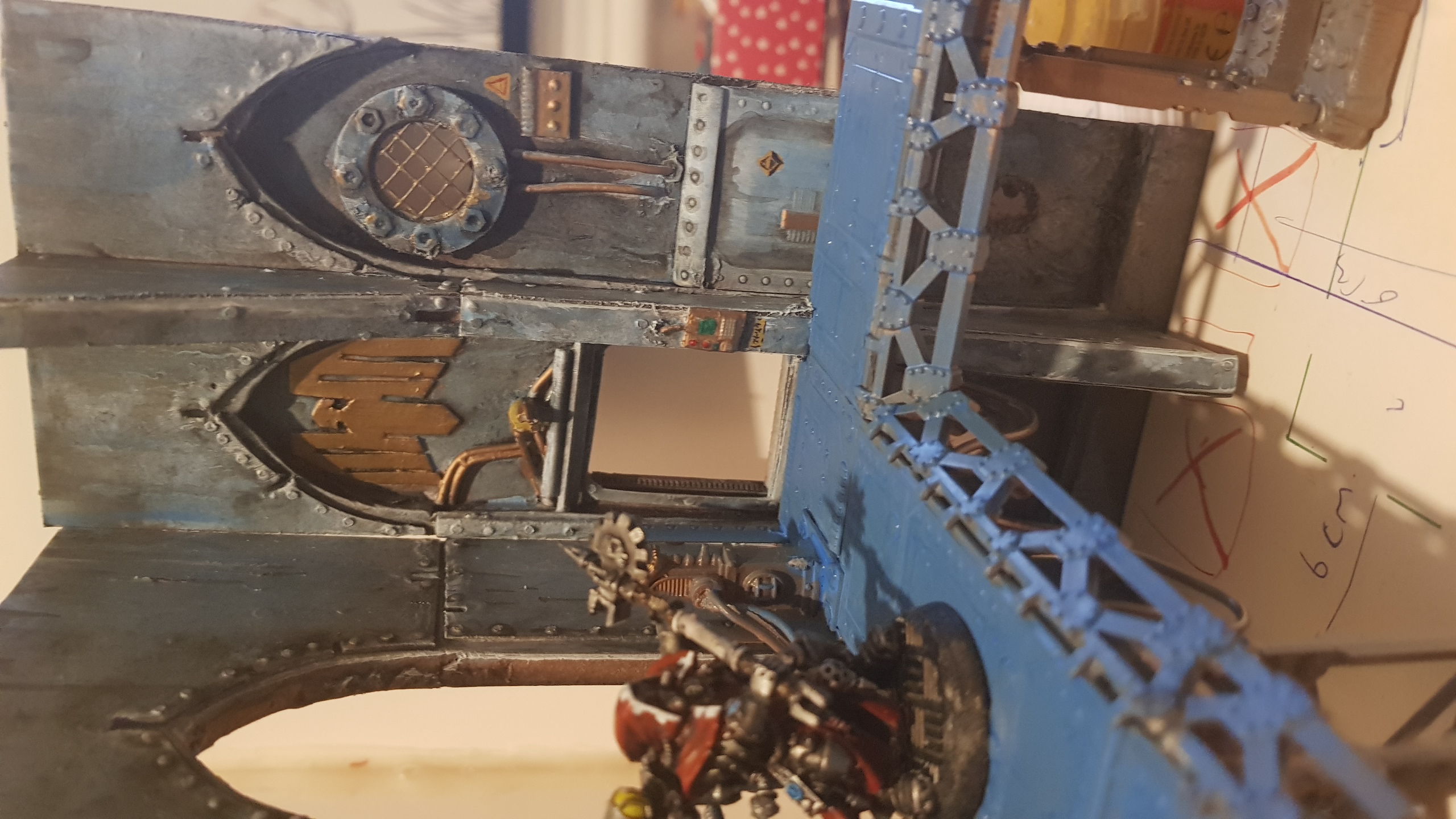 You can also see the door, which Ive tried to make look like a space hulk piece. It opens up and down, as it is too close to the outer hull to go left/right.