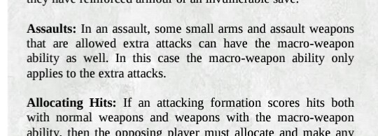 Are you sure about only the extra attack having Macro-weapon profile Sherrypie? I always took it to be all of the unit attacks. Example profile below from Heresy AU. If you are right I may have some apologising to do