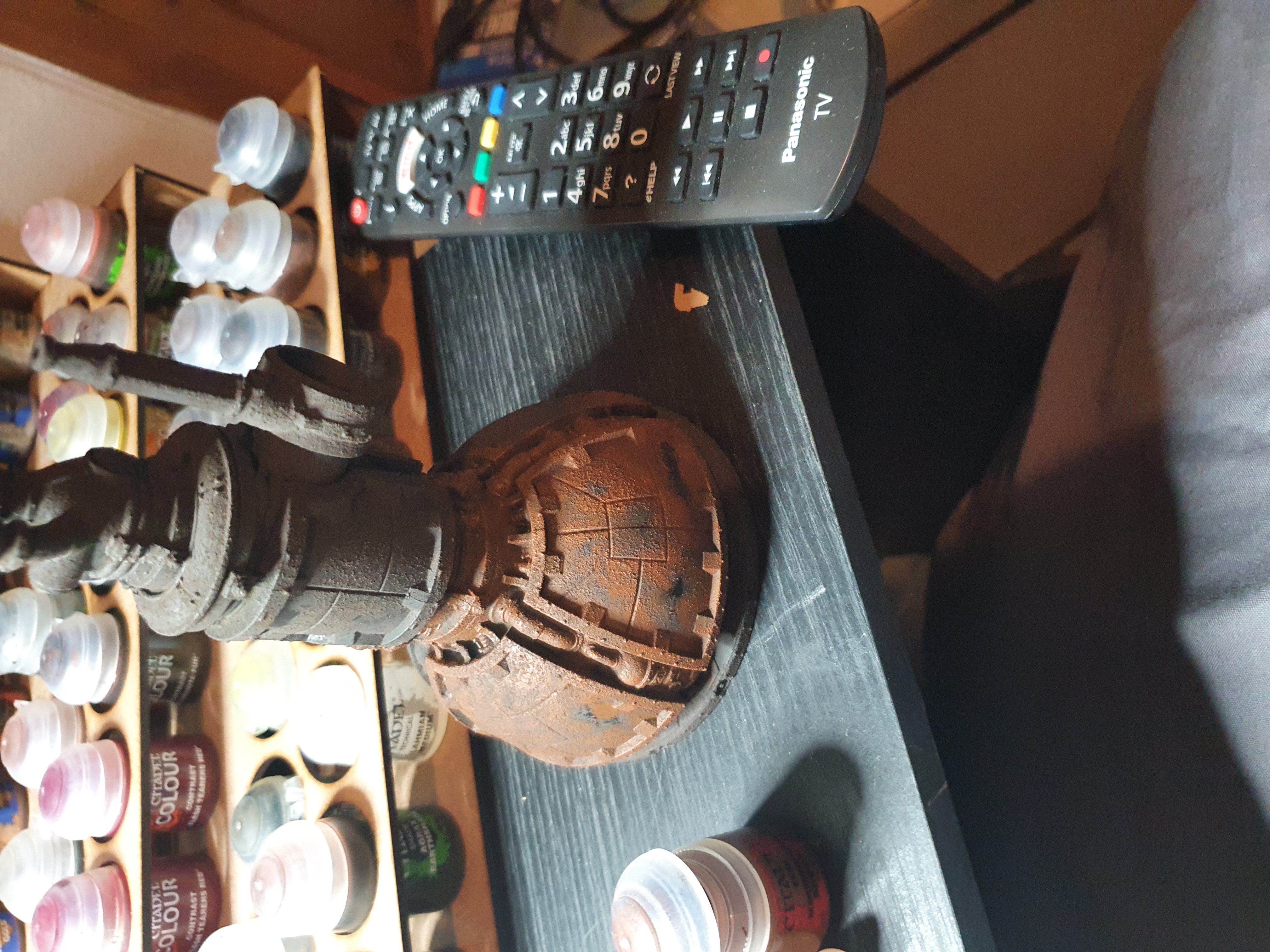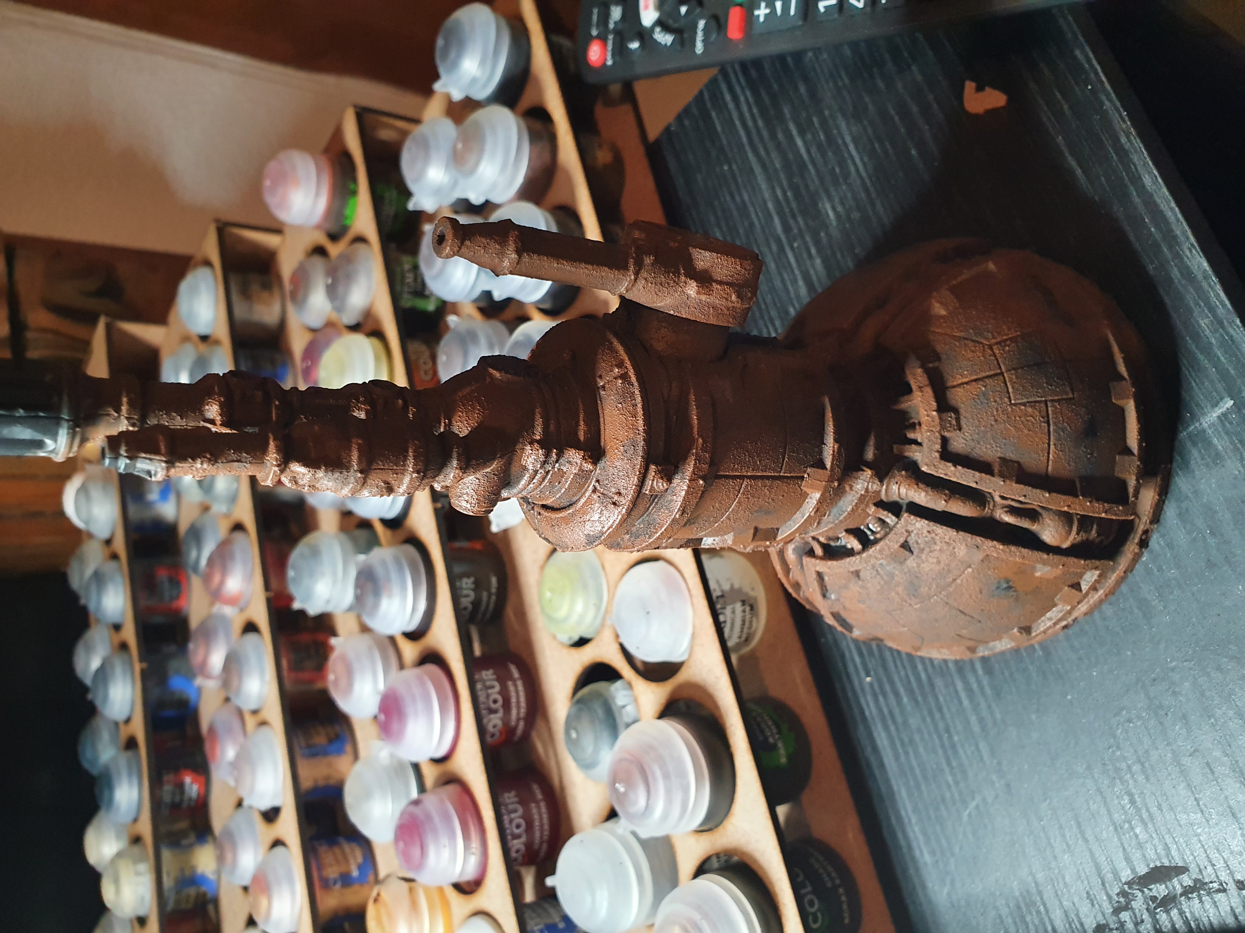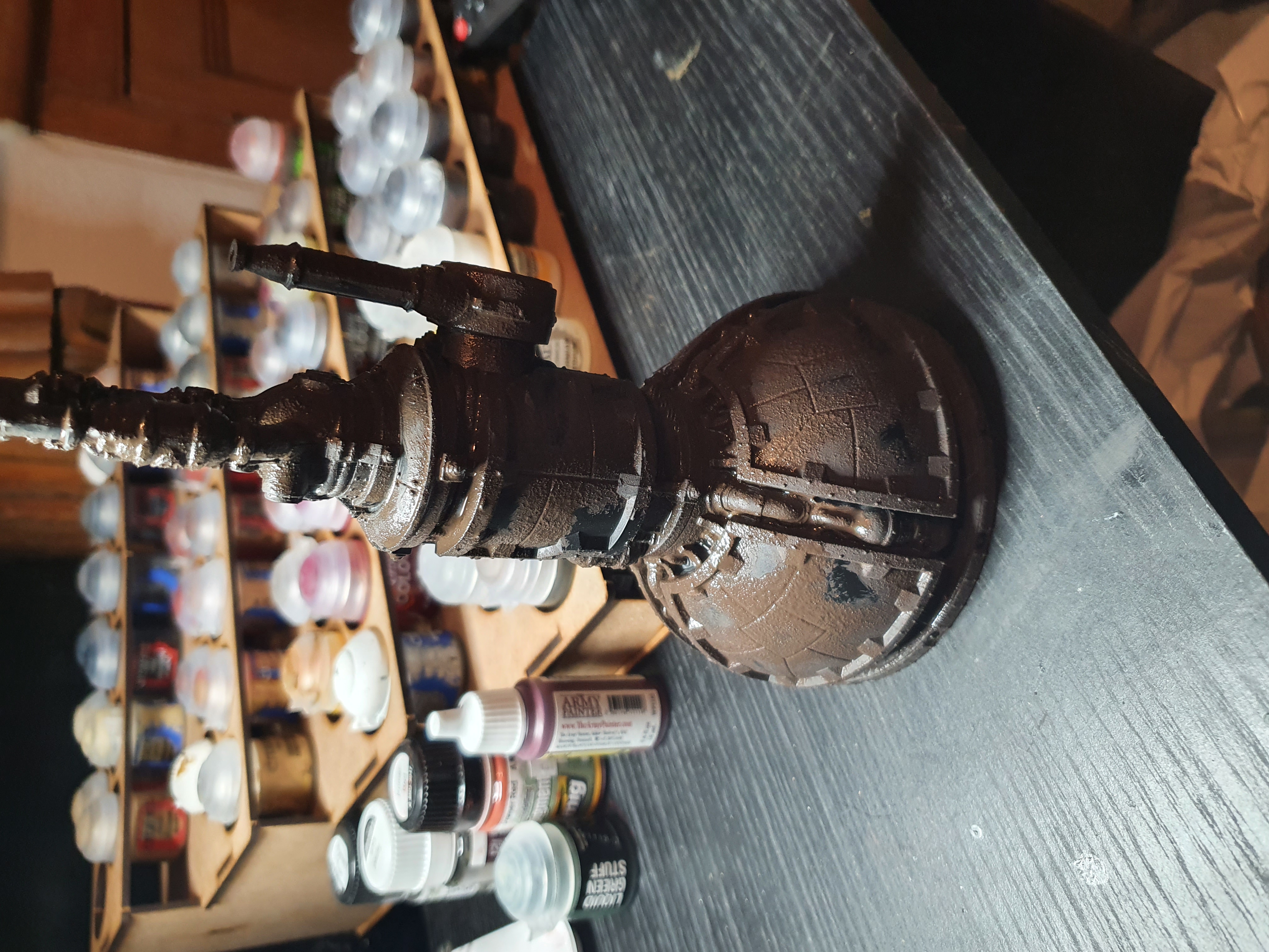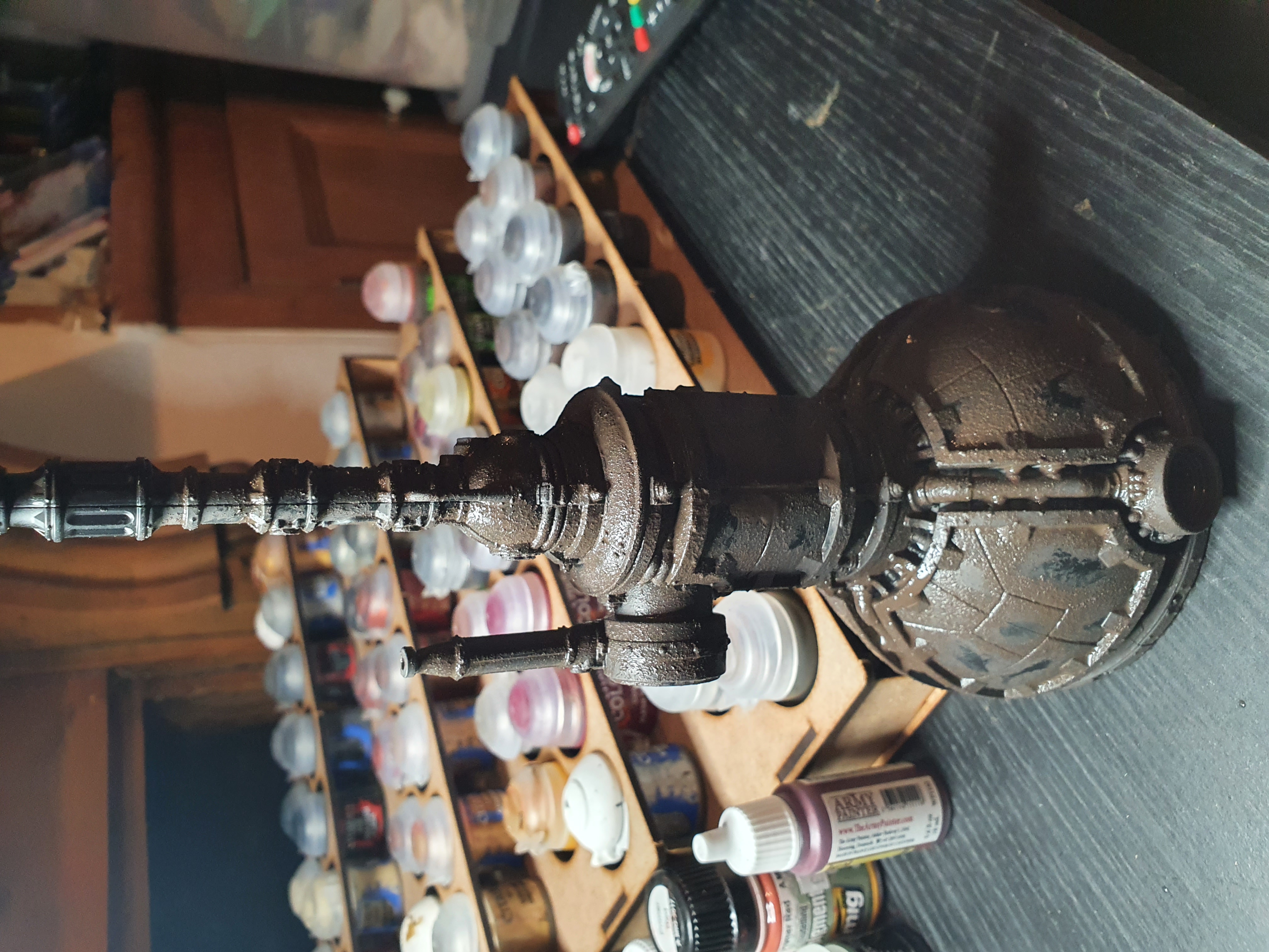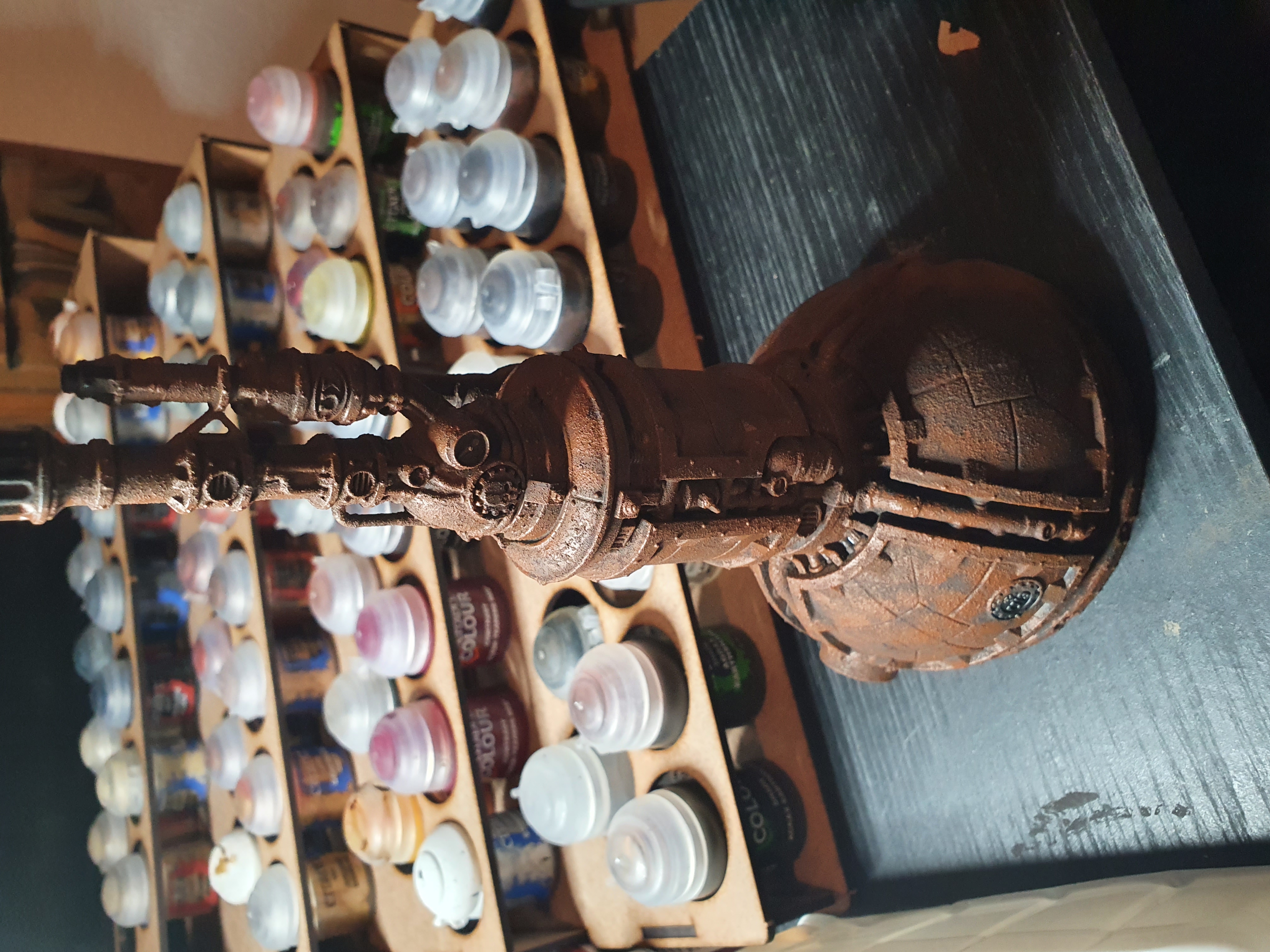 Then throwing on some bronze for piping, gold for paneling details, some grey of bluey grey not sure yet for paint left before rust, and not sure what colour for wiring yet.