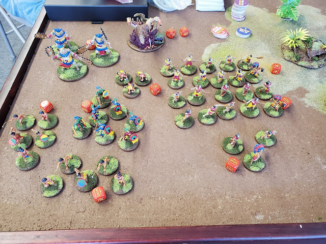 It was my Everliving Aztecs vs my friend Josh's Everchanging Tribal Nations, at 1,000 points.