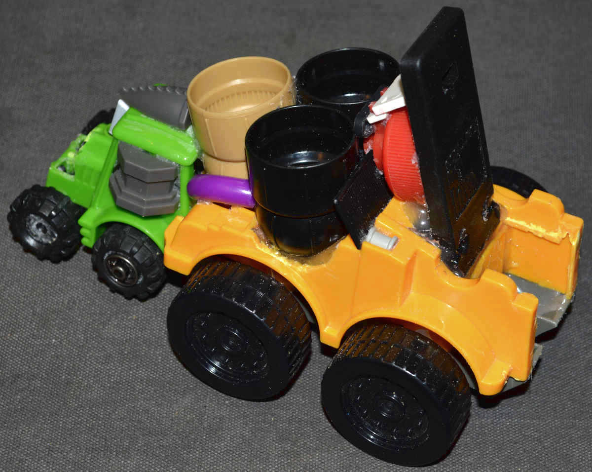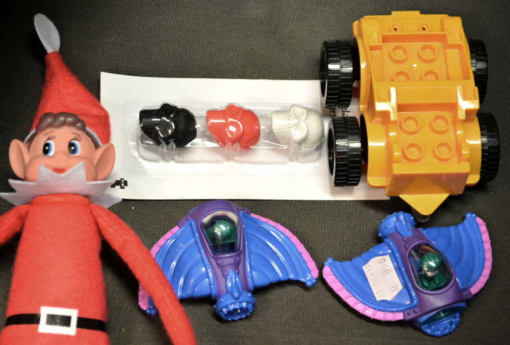 Now I'm planning on building even bigger things for this "army"! These ill fortuned toys will be transformed into a Defiler (head from Christmas elf + demonic crab legs), a Khorne Lord of Skulls (Dublo car + skull) & two Heldrakes (those weird little spacecrafts). Just add in dozens of armour panels, decorations, skulls, spikes, weapons and mutated demonic goodness sculpted from modelling putty...