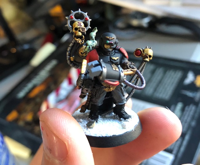 A so far untested, unblooded and freshly painted Inquisitor. Ready for the battlefield. Wanted to do some +4 invul save shenanigans with my foot guard army before a new codex drops and have never run an inquisitor. Had some extra bits and some glue and ended up with this nameless agent of the Imperium. Wasn't super happy with the pose until I got paint on him and started to grow on me. Was originally just going to be another company commander.