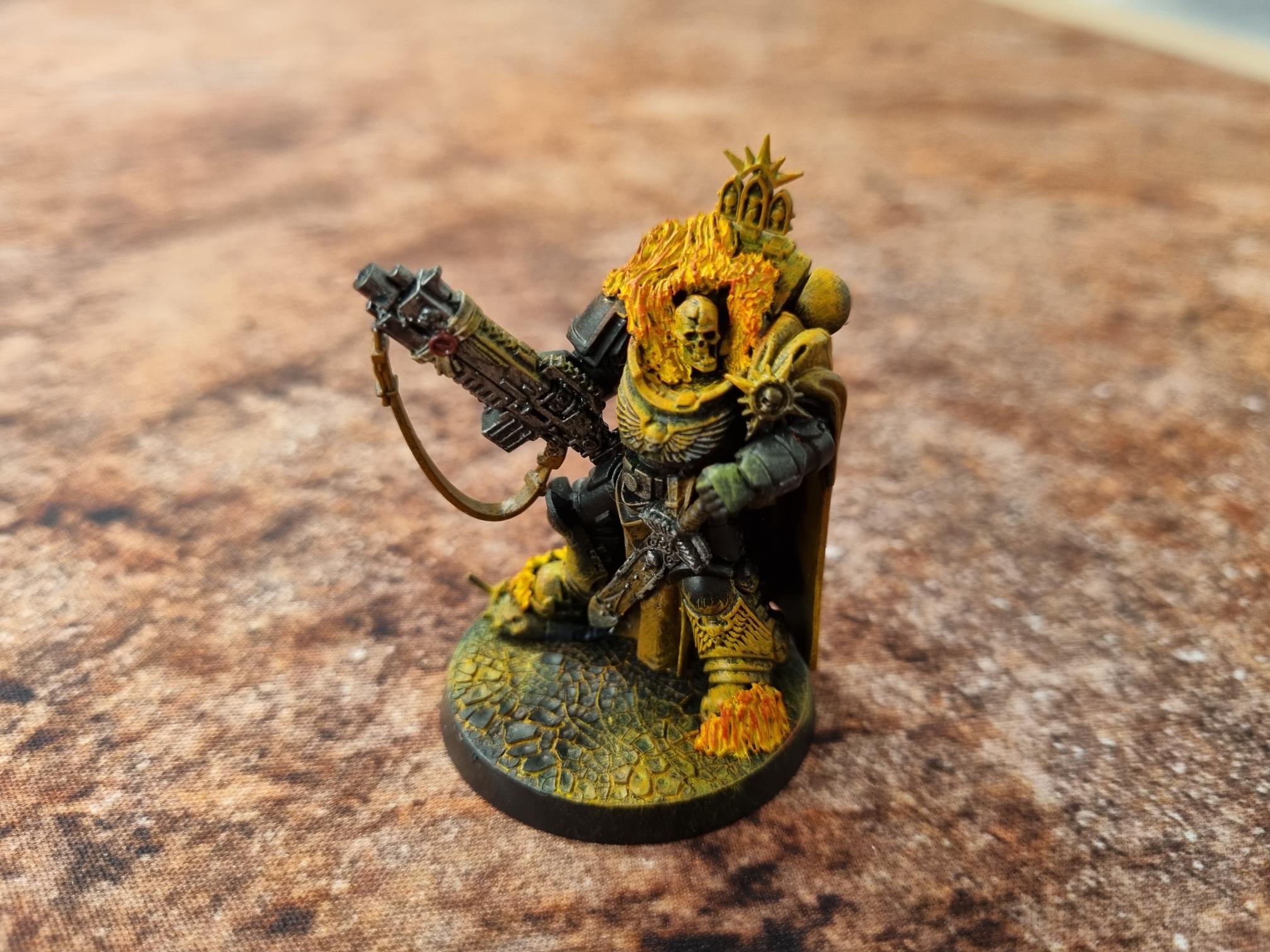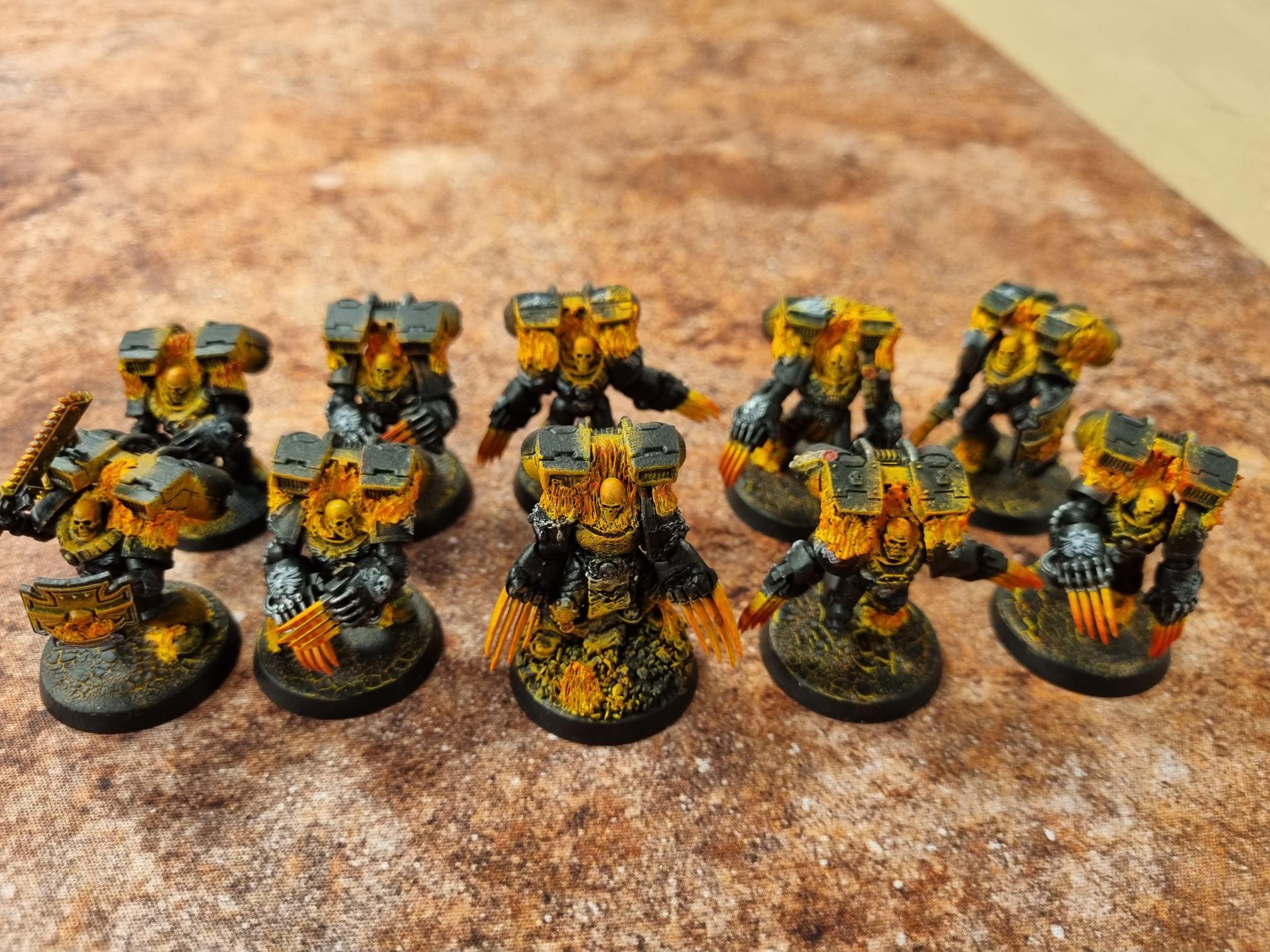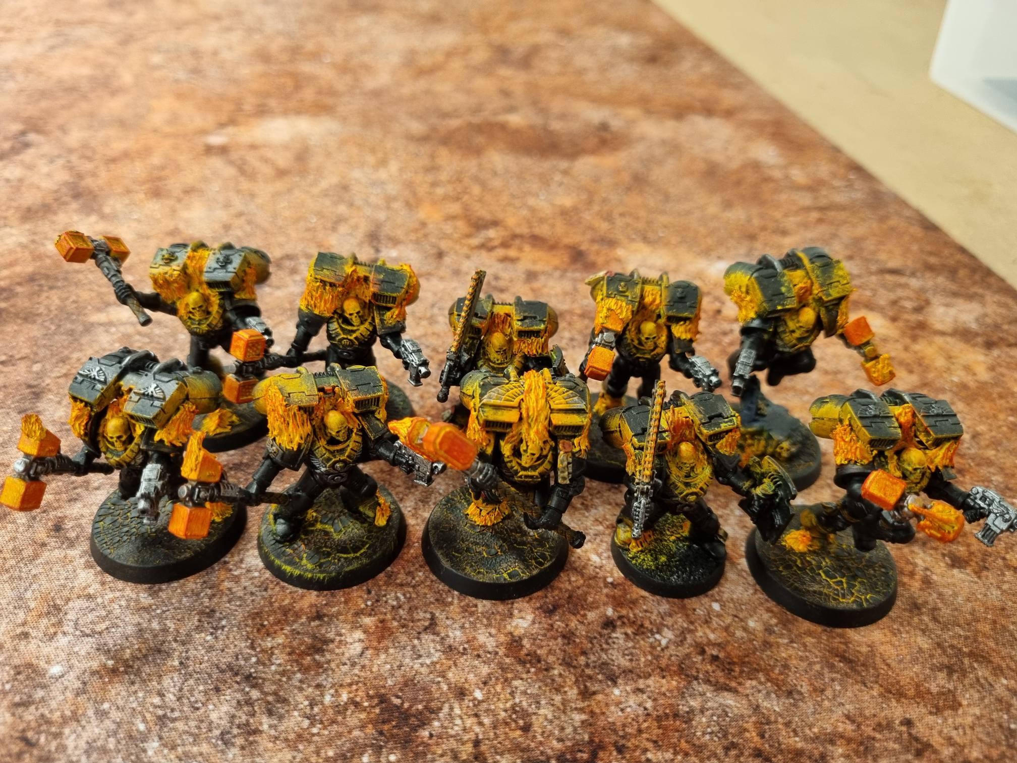 Still, you did an excellent job with the ethereal flames that flicker over their forms and grow as they get closer to death. And even if it's not lore friendly, the skull heads are absolutely awesome! (Not that them having Primaris is either, but we're both doing that.  ) Are those from the skull basing kit or old GW skeletons?