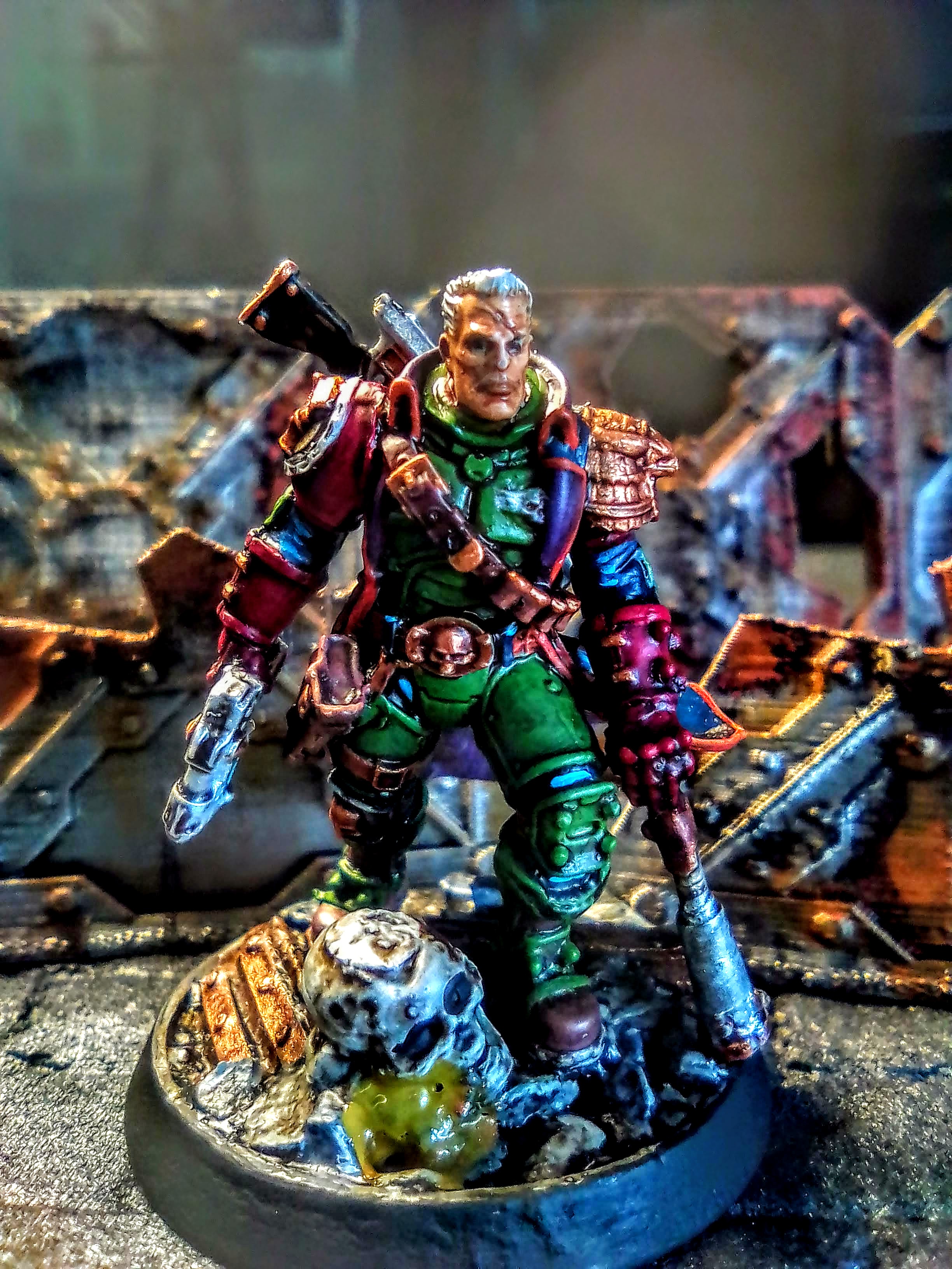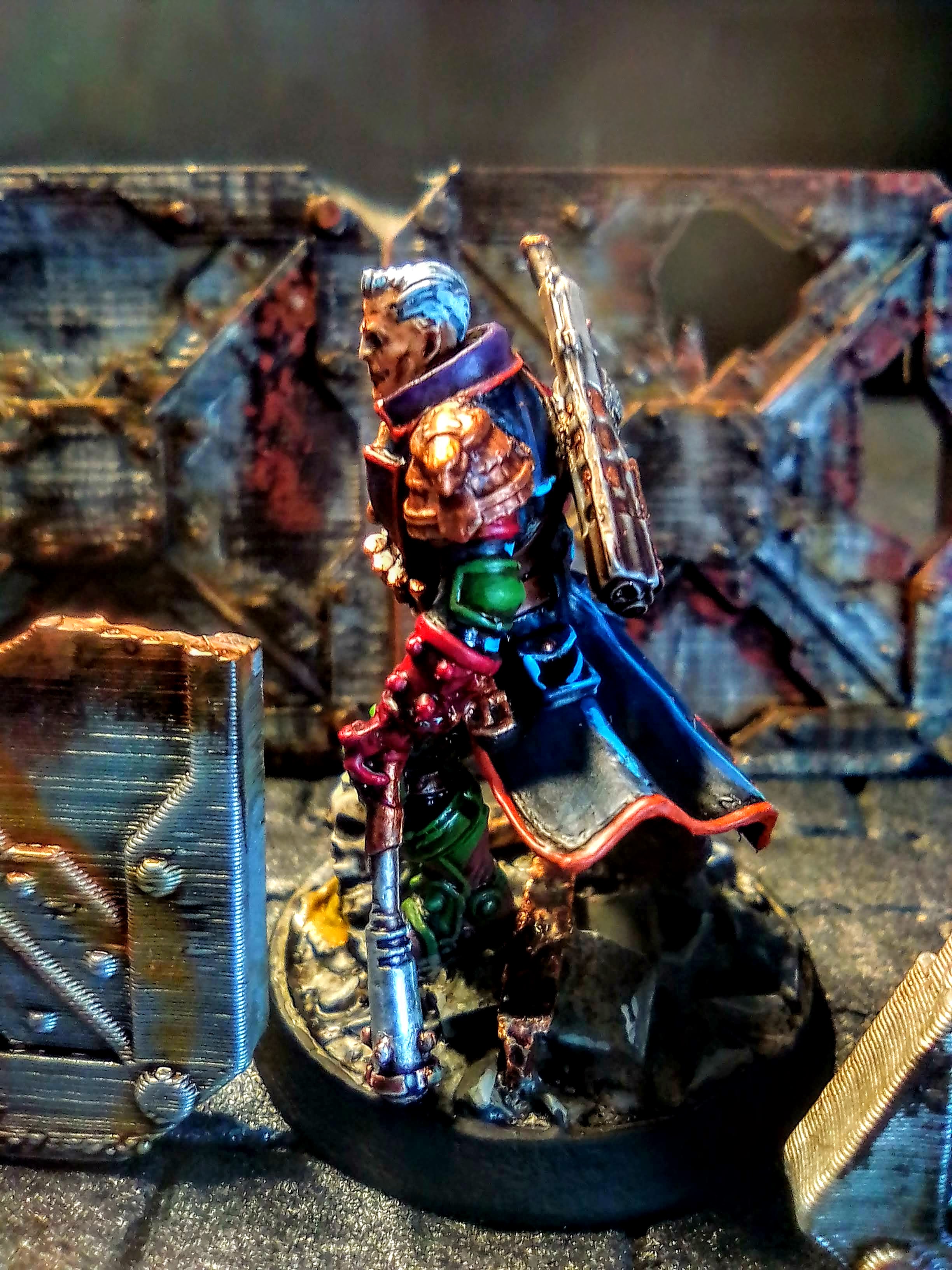 GW steals the Judge concept for their Arbites. That is used as background for the character depicted here https://wh40k.lexicanum.com/wiki/Godwyn_Fischig and then referenced with sufficient legal coverage by Artel.