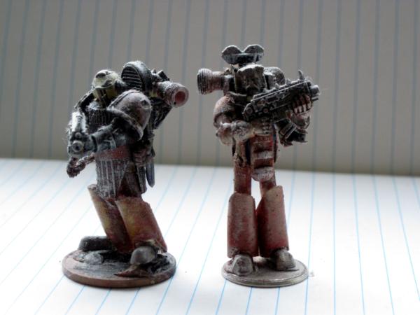 This project is a lot of fun! Love the ingenuity of these guys; it's really cool how you've used such simple materials but still nailed the silhouette of the space marines. Those backpacks with the lighter parts (?) are awesome.