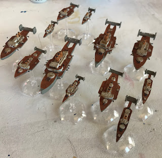 I wonder how useful the DW airships are for this? The visual style should fit perfectly, and I guess the modular weapon options are useful for a variety of lists? I was about to order the upcoming Magenta Battlefleet set anyway, but now I need it even more. And Warcradle has more airships coming over the next months - a nice aligning of the star... clouds!