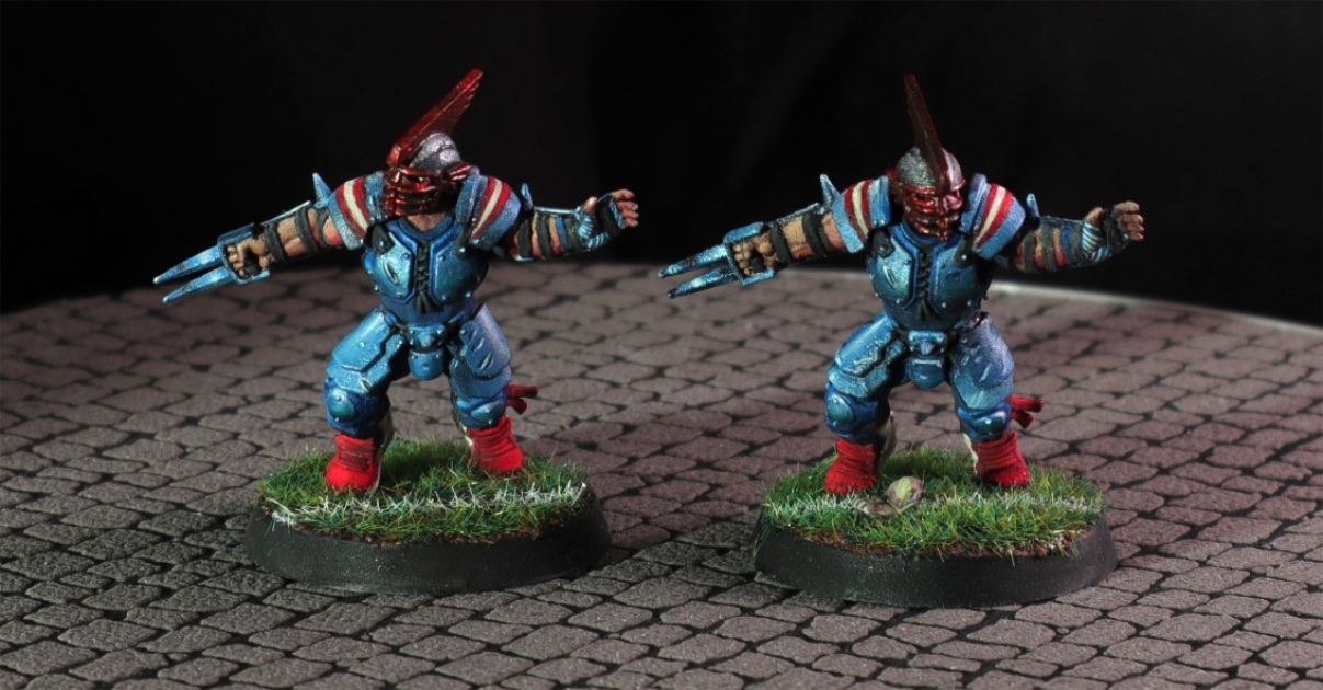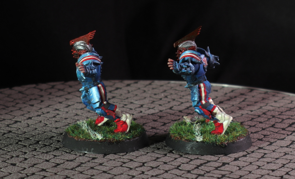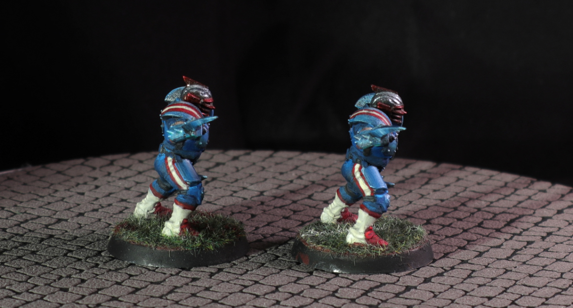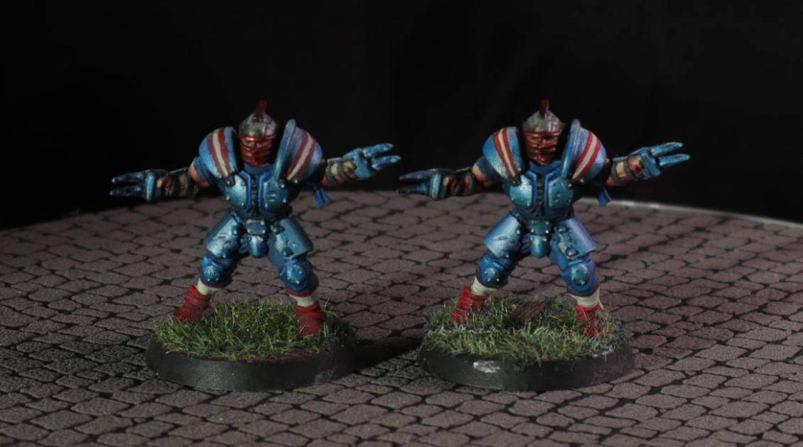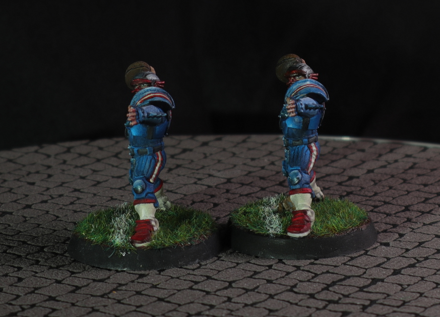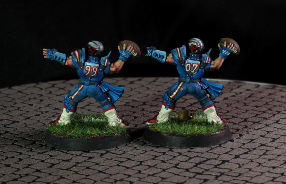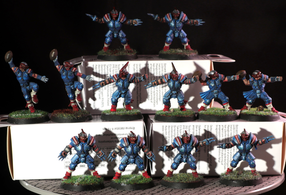 A human Blood Bowl team i did as a commission for someone he wanted them painted as New England Patriots.