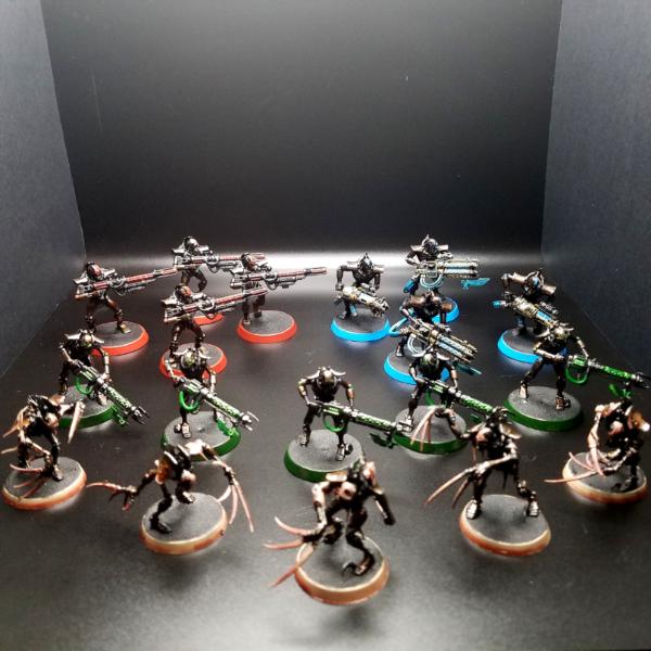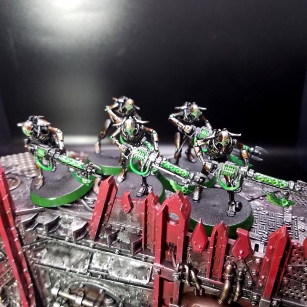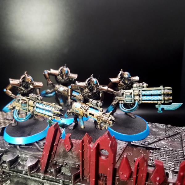 I wanted to see how many models I could do in ten hours. I chose Necrons as they are easy to paint to a high standard. I shot for one of each fire team available for a Necron Kill Team.