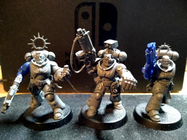 Looking for some inspiration and or motivation to finish them by uploading the pictures here. I'm using lieutenants as base for all but two of the sergeants that are originally a sword brethren and a bladegourd instead, the rest being the two from Heroes of the Chapter, the regular one, the Blood Angels one and the Space Wolves one on a hero base for the captain. The loadout of the first three is plasma pistols and power weapons, the second three is one of each bolter and power weapons (one of which one is missing due to mail error) and the captain with a heavy bolt pistol, storm shield(/relic shield) and power axe(/sword). Nothing is sett in stone as i have already changed and shuffle gear around multiple times. Their chapters are left to right Black Templars, (haven't decided yet), Mortifactors, Novamarines, Crimson Fists, Flesh Tearers and Space Wolves. Thinking of some jungle inspired texture bases for the sergeants when they are all finished.