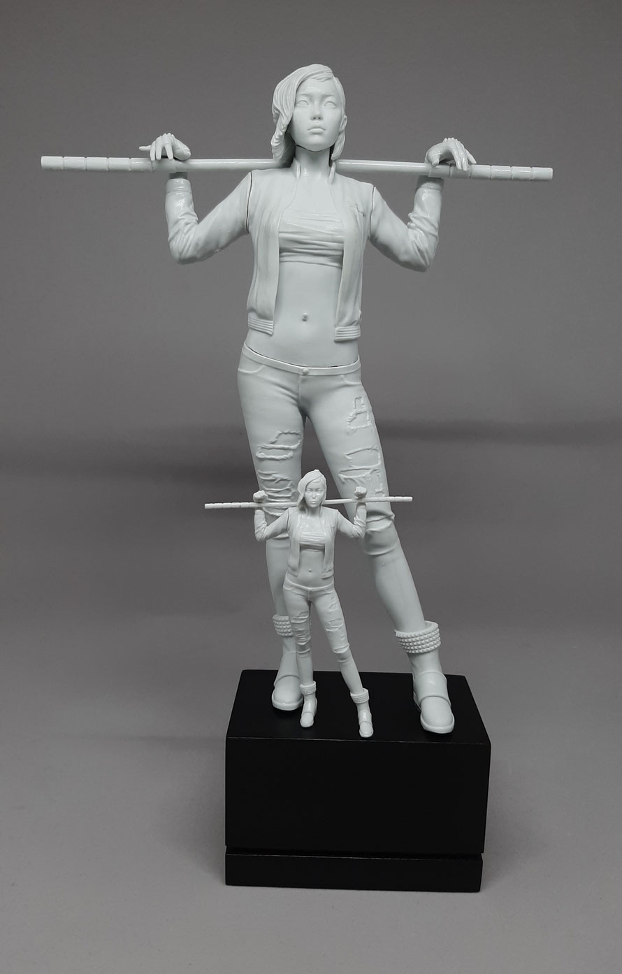 Akane Deluxe stands at 200mm while the '75' in Akane 75 kinda gives it away for her smaller sister who stands at roughly 75mm tall. They are cast in high quality resin and both versions have 8 parts each.