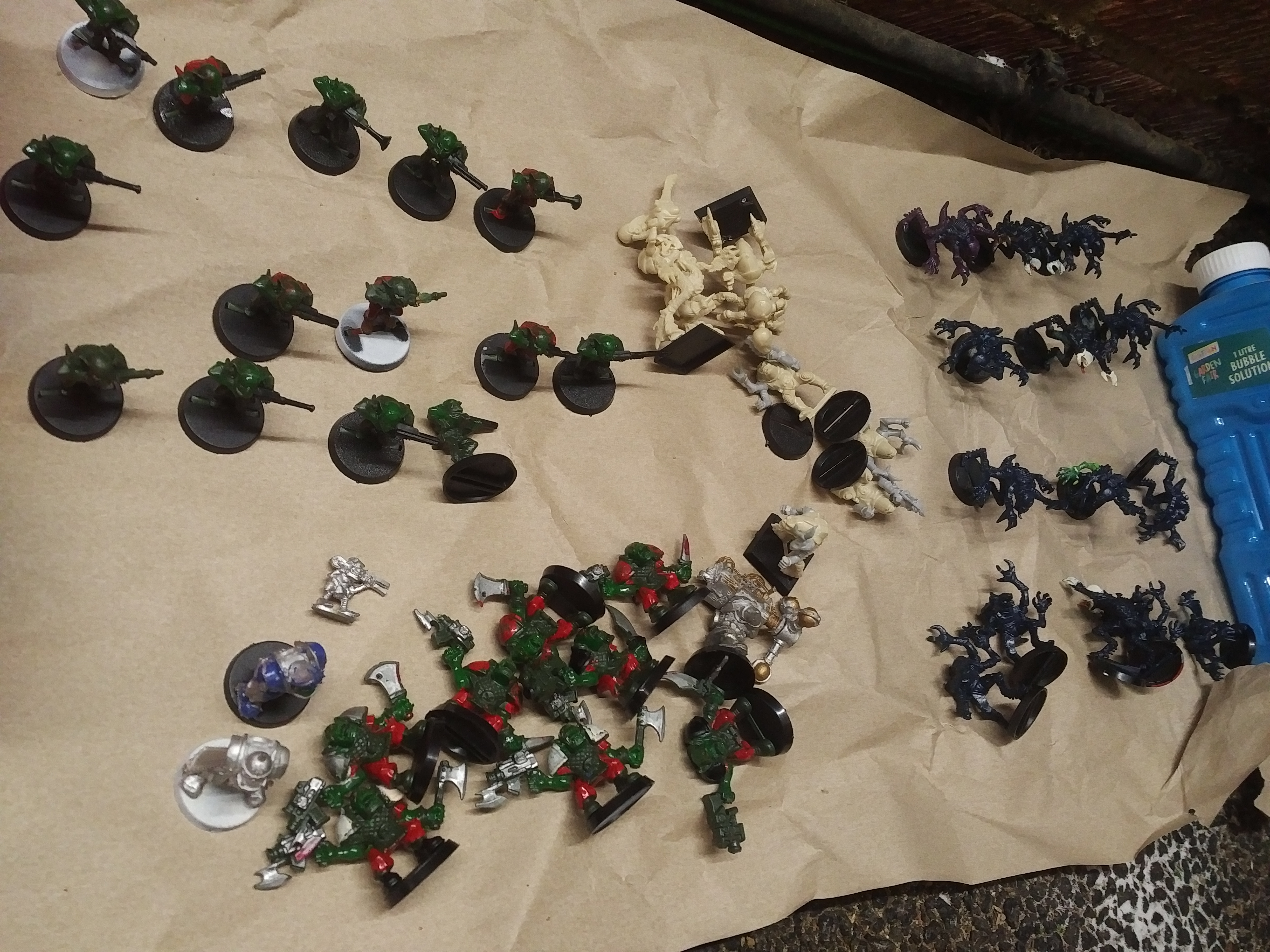 The worst ones had an "undercoat" of white Dulux woodwork gloss, followed by copious Humbrol, followed by Citadel spray primer, followed by patches of Dark Angel Green where I'd hoped to repurpose the collection as a small