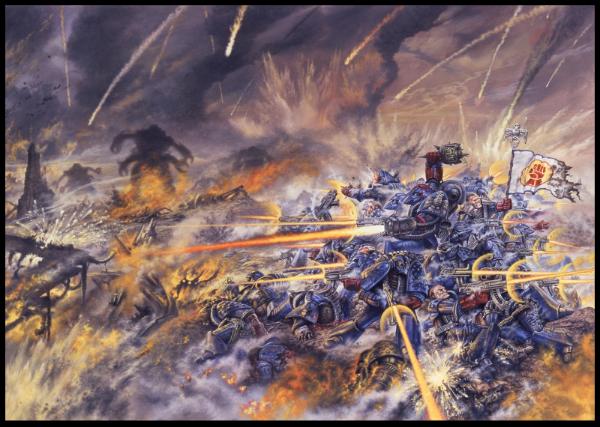 I think it's great how Rogue Trader appears to have gone from classic, clean furture sci-fi cover art, to the apocalyptic nightmare that adorns our classic 40K bible.