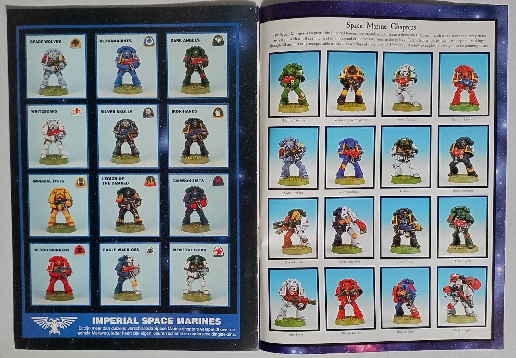 I recall that GW stores used to have a pamphlet or something of the sort where it was a series of small boxed pictures of various space marine chapter color schemes all on one or two pages.