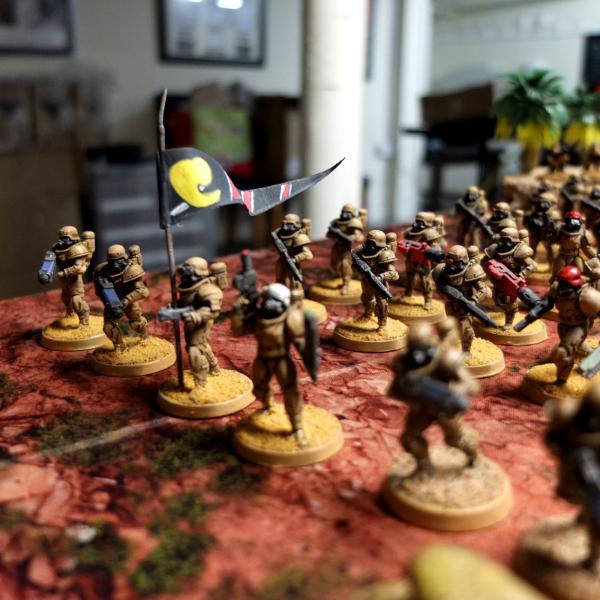 The Eolian Desert Fighters are a planetary defence force caught on the wrong side of the rift and forced to use non-standard wargear as they defend their desert world from ever greater threats and remain loyal to an Imperium they hope has not abandoned them.
