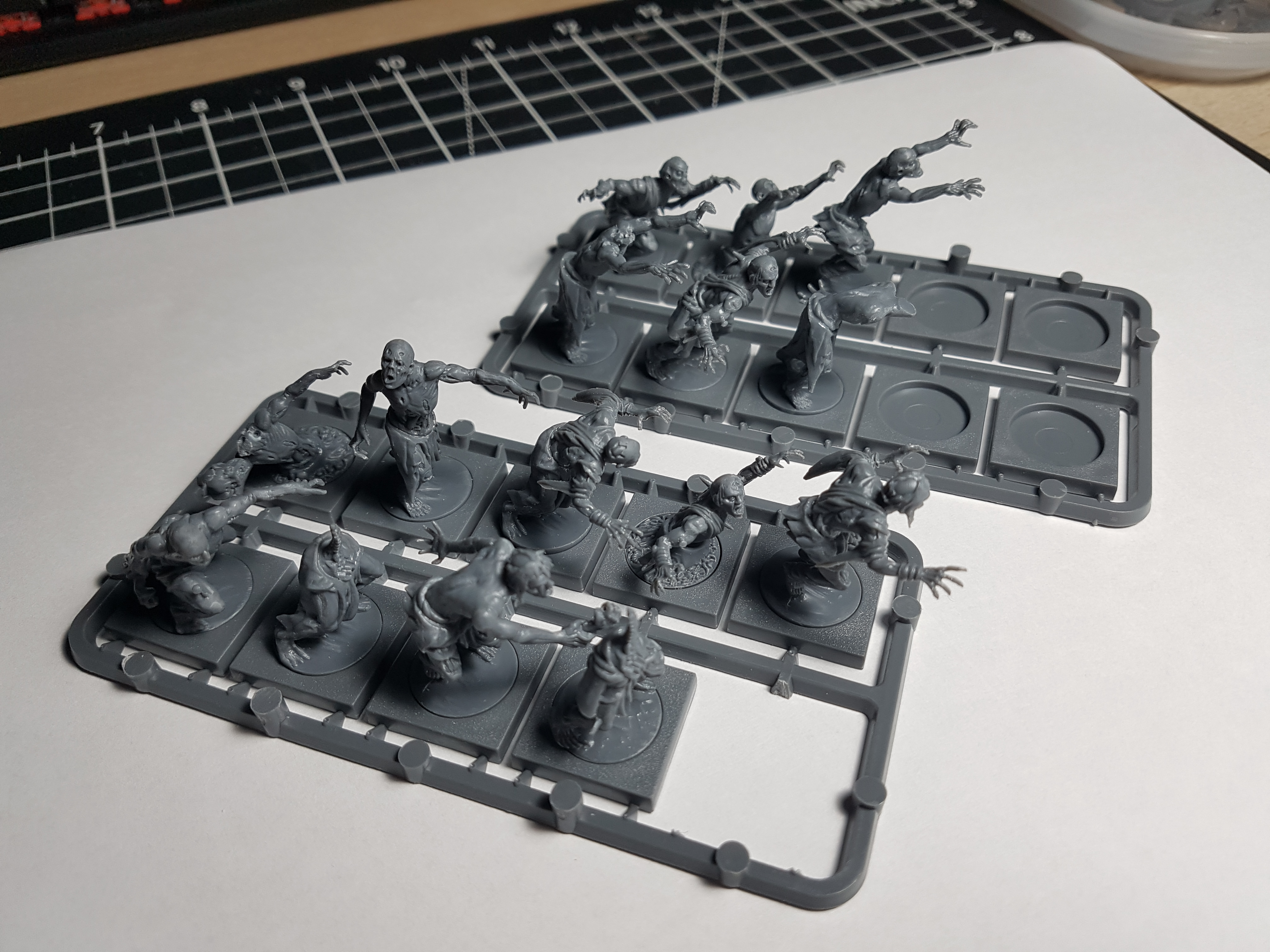 Secondly, I got my zombies from Mantic Games, they look awesome, but the way they attach to the base is a bit awkward. The minis come with a circular base that slots into a hole in the base. I would like to make the bases fancy. With some tombstones, still water and stuff, but I'm not sure what order to approach it with. Should I paint the mini itself first and then do the base after that's done, or build the base, glue everything and paint it all together in one go? I'll attach some photos below, so that you can see what I mean.