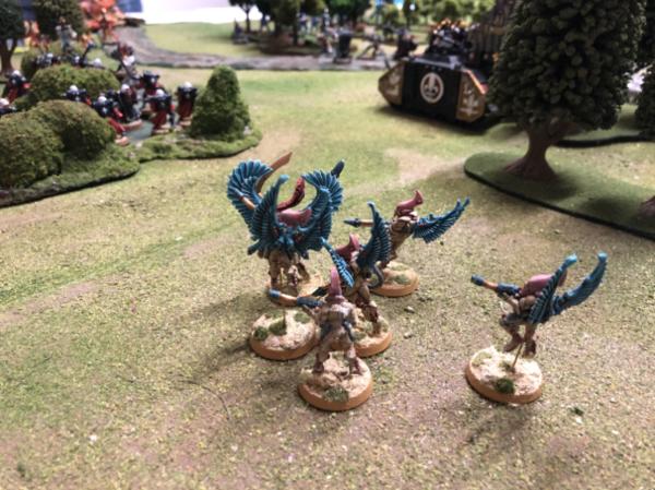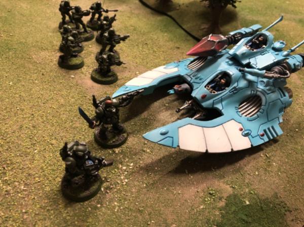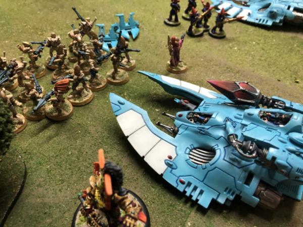Eldar skimmers attempt to slow the tide of Imperial troops, but are taking damage in return