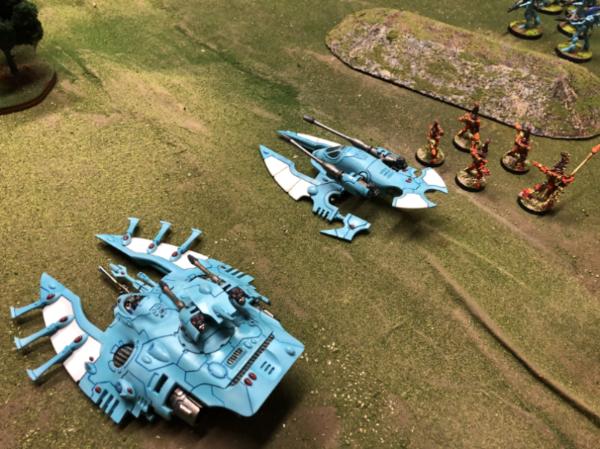 Eldar infantry and skimmer tanks advance