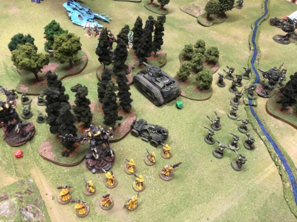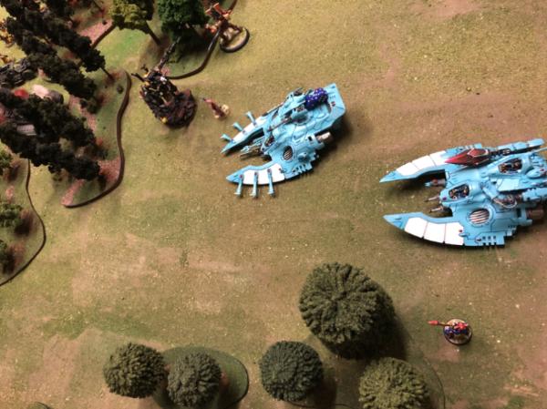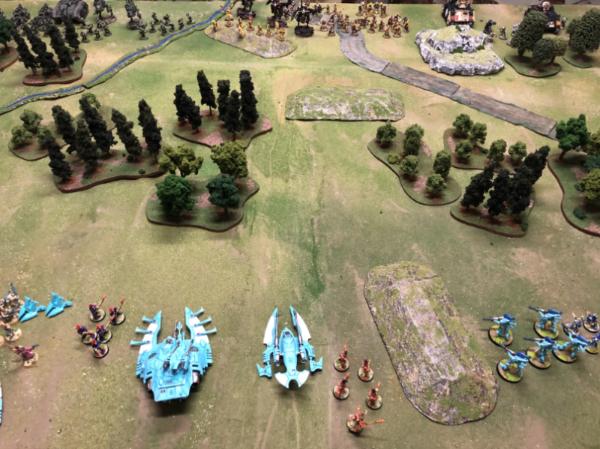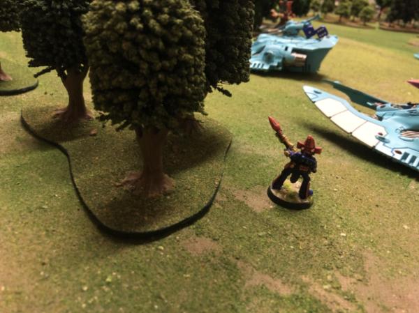 A good game – the Eldar held their own for the first half, but their inability to use their speed kept them pinned behind the woods,