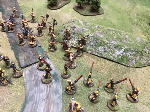The Imperial battleline spreads out as it enters the woods