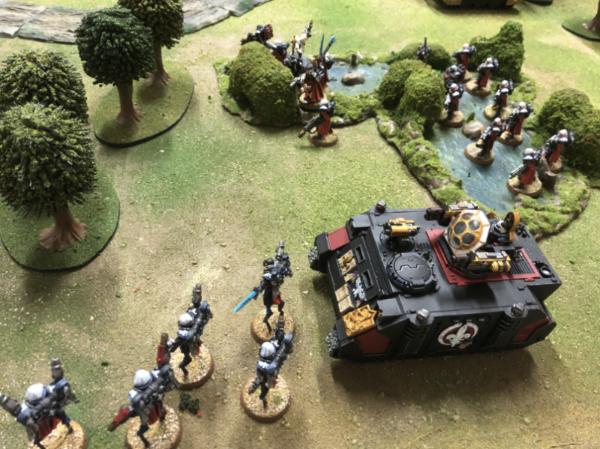 Sororitas and church forces pull down more of the Eldar force.