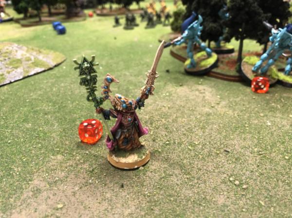 Farseer Asurtelar is wounded as he casts protections on his forces