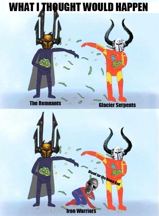 Also, question: do you have any plans against the Remnants or the Death Ravens? I'm asking so I can already mentally prepare myself for the unimaginable amounts of trolling you'll put my poor armies through