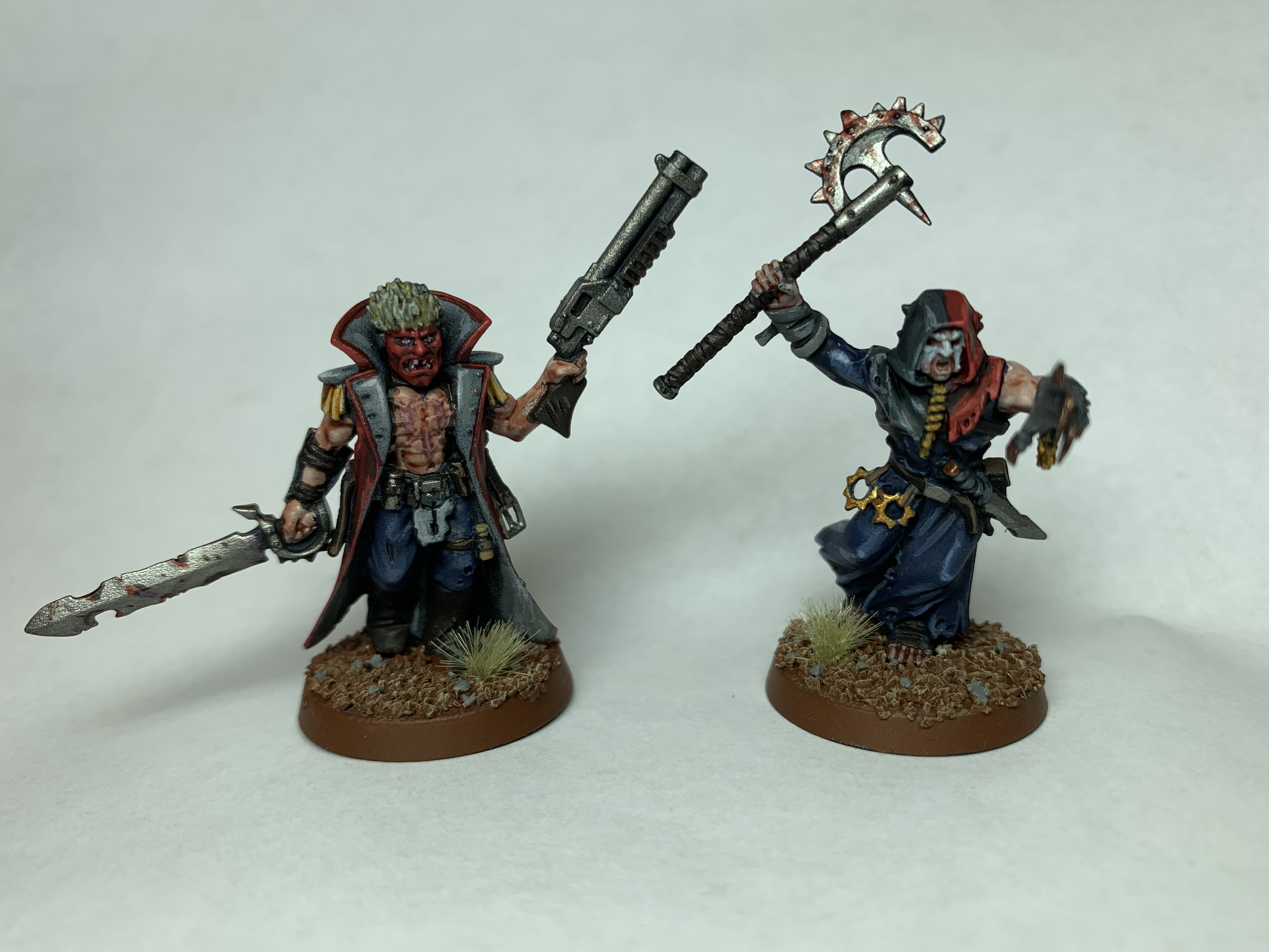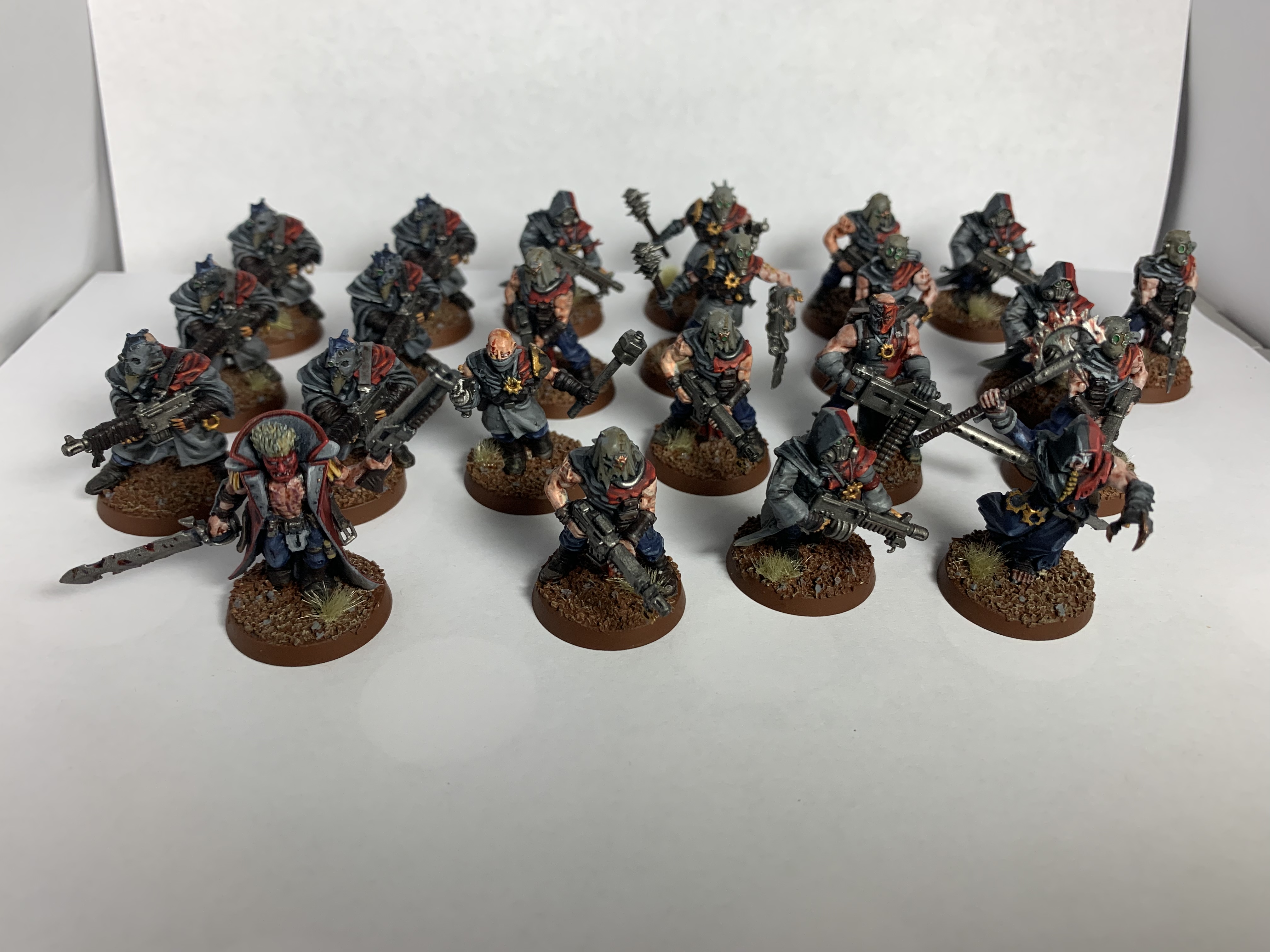 The unit all together looks great. To me, you struck the right balance of variety/individuality and cohesiveness for a cultist unit. Good stuff.