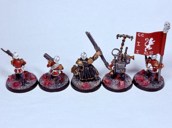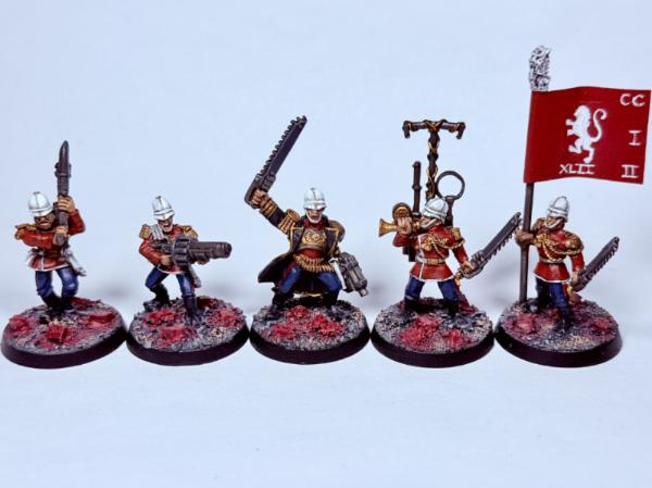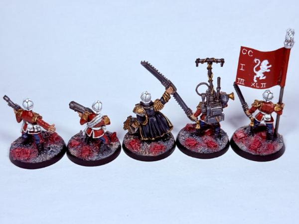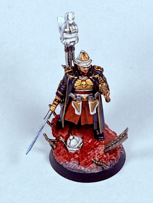 Love the reds, the candy-floss coloured bases, and the pith helmet you gave her. The banner replacement looks so unique and lends more originality to the lass-she's not just Ursula with a headswap, as stated, she looks like a unique commander, seeing kitbashed boots-on-the-ground Guard colonels is always a delight.
