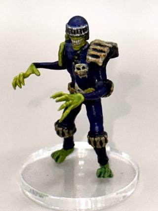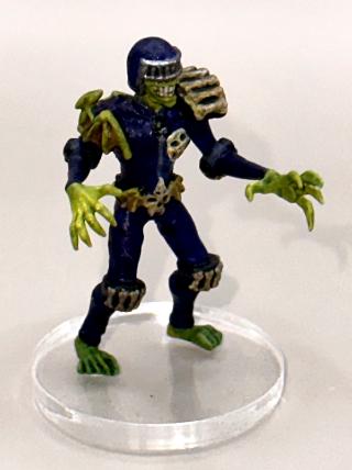 First up we have the lovable boogeyman from the venerable British comic anthology series 2000 A.D., Judge "Sssidney" Death.  This is a repaint of a pre-painted Heroclix model, with kitbashed arms and hands taken from a Wyrd Miniatures Sorrow. Judge Death's modus operandi is reaching into his victim's chest and squeezing their heart, so I thought he needed to look suitably grabby, with grasping hands extending long, gaunt fingers.  (Given how often he's been sculpted, it's odd that nobody's ever rendered him in this iconic pose.) The mouldering bones on his uniform were particularly fun to paint.  A few more views: